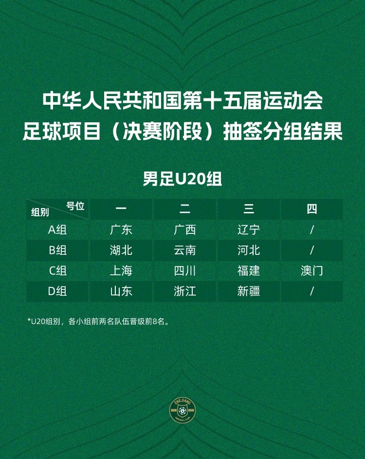 根据赛程安排,浙江全运U20队在首轮比赛中轮空,随后将在11月3日和11月5日先后对阵新疆和山东,而这一比赛时间不会与中超联赛重叠。
