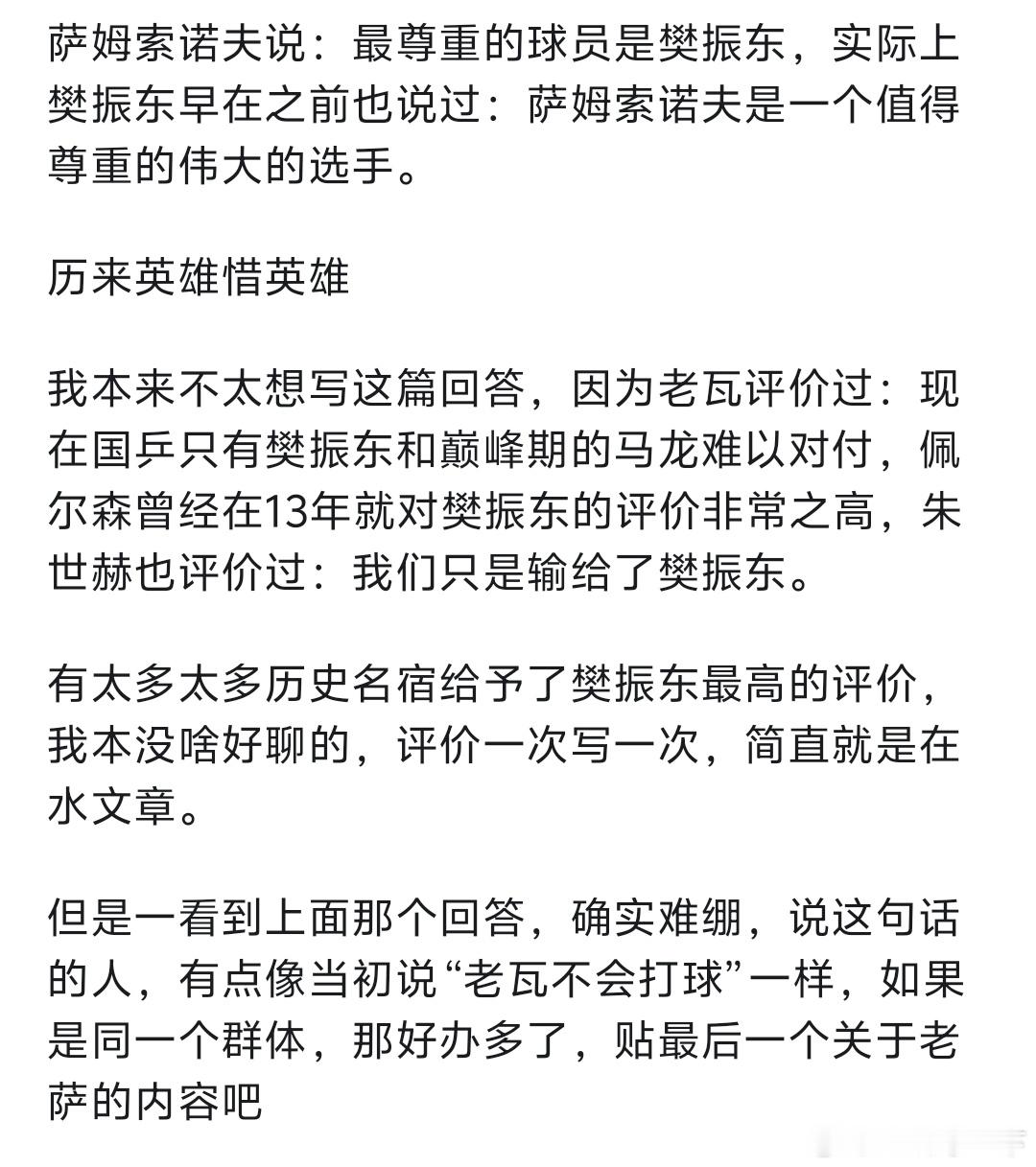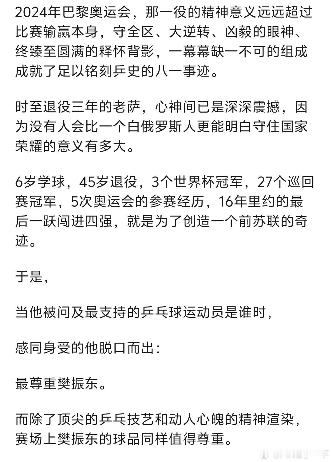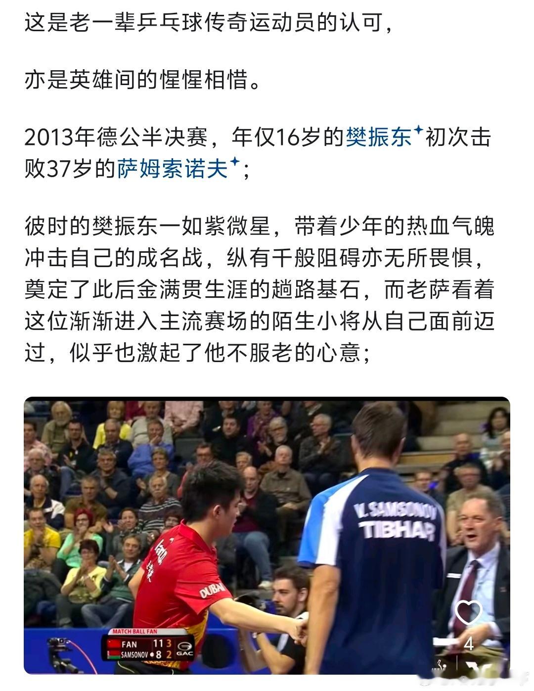这一刻更加读懂了为什么乒乓球名宿萨姆索诺夫会说“最尊重的球员”是樊振东这句话了。三个维度:“干净”“尊重”“英雄惜英雄”