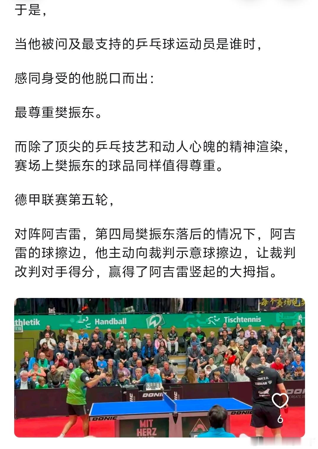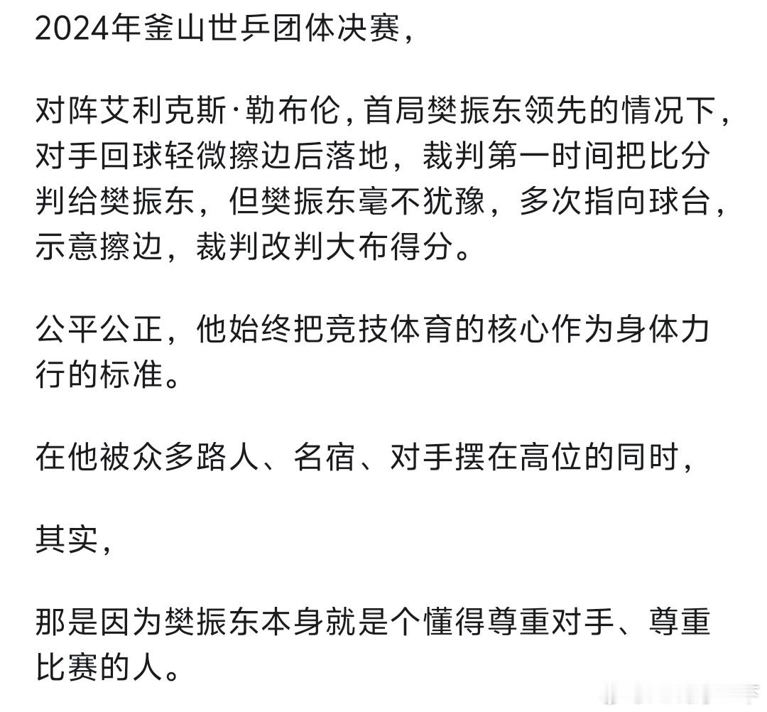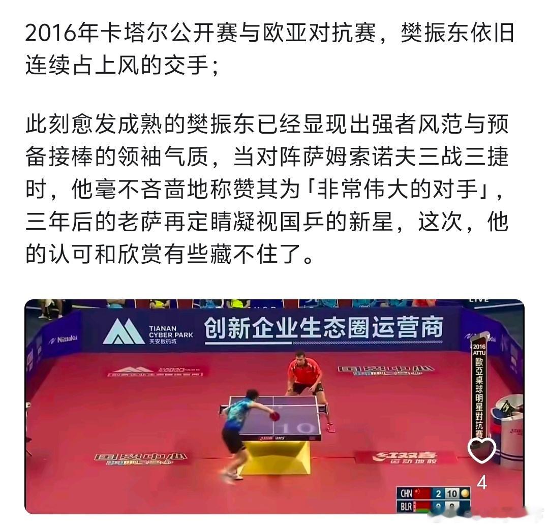 这一刻更加读懂了为什么乒乓球名宿萨姆索诺夫会说“最尊重的球员”是樊振东这句话了。