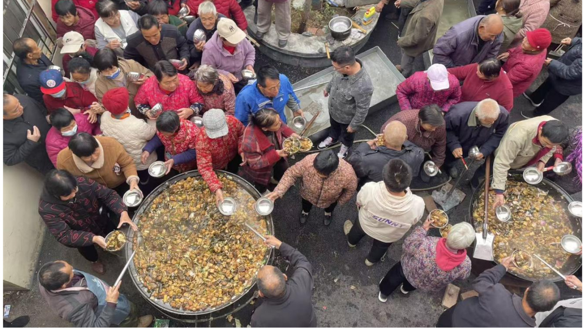 戏曲尾声,院内两口大锅飘出烩菜香气。这是小河涧村文化惠民的老传统,大家围坐共餐,畅谈说笑,如同一场温馨家宴。这顿饭,吃的是滋味,暖的是人心,聚的是民心。