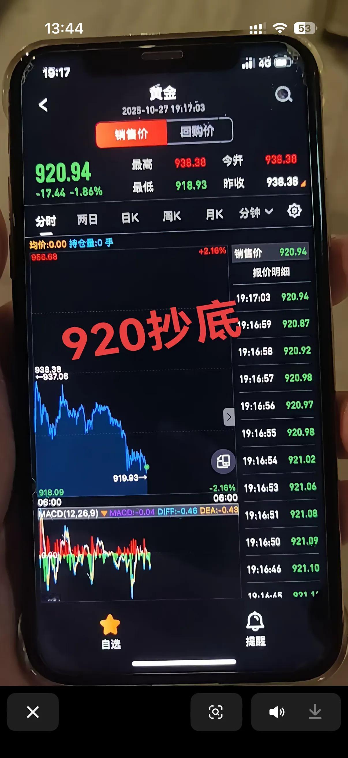 做黄金投资的人,这周注定不会好过了! 上周六周日,黄金就已经传出要下跌的消息了!但是有些人就是不死心,还是嘴硬的说 即使黄金下跌这也是回调而已,黄金势必会涨回一千以上! 这些人还说黄金现在正是抄底的时候,可是她们万万没想到的是真的被资本抄底了! 人家菲律宾都说了现在黄金太多了要抛售一些了! 可是那些被金钱迷了眼的人还说,菲律宾才多的一个国家,充其量黄金储备 都未必能有咱们一个省的黄金储备多呢! 可是人家菲律宾是一个国家,人家能去联合国投票,你一个省能去么? 国家说的话能和一个省说的话影响力一样么? 今天黄金开盘直接给大家表演了一个飞流直下三千尺! 投资理财需谨慎!
