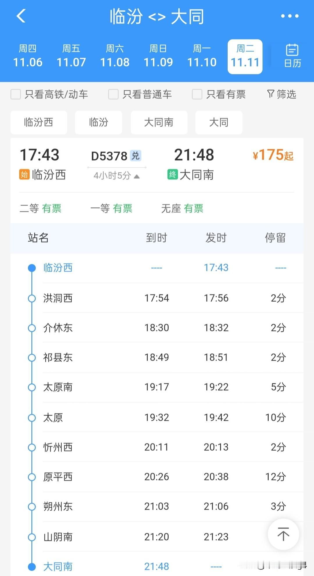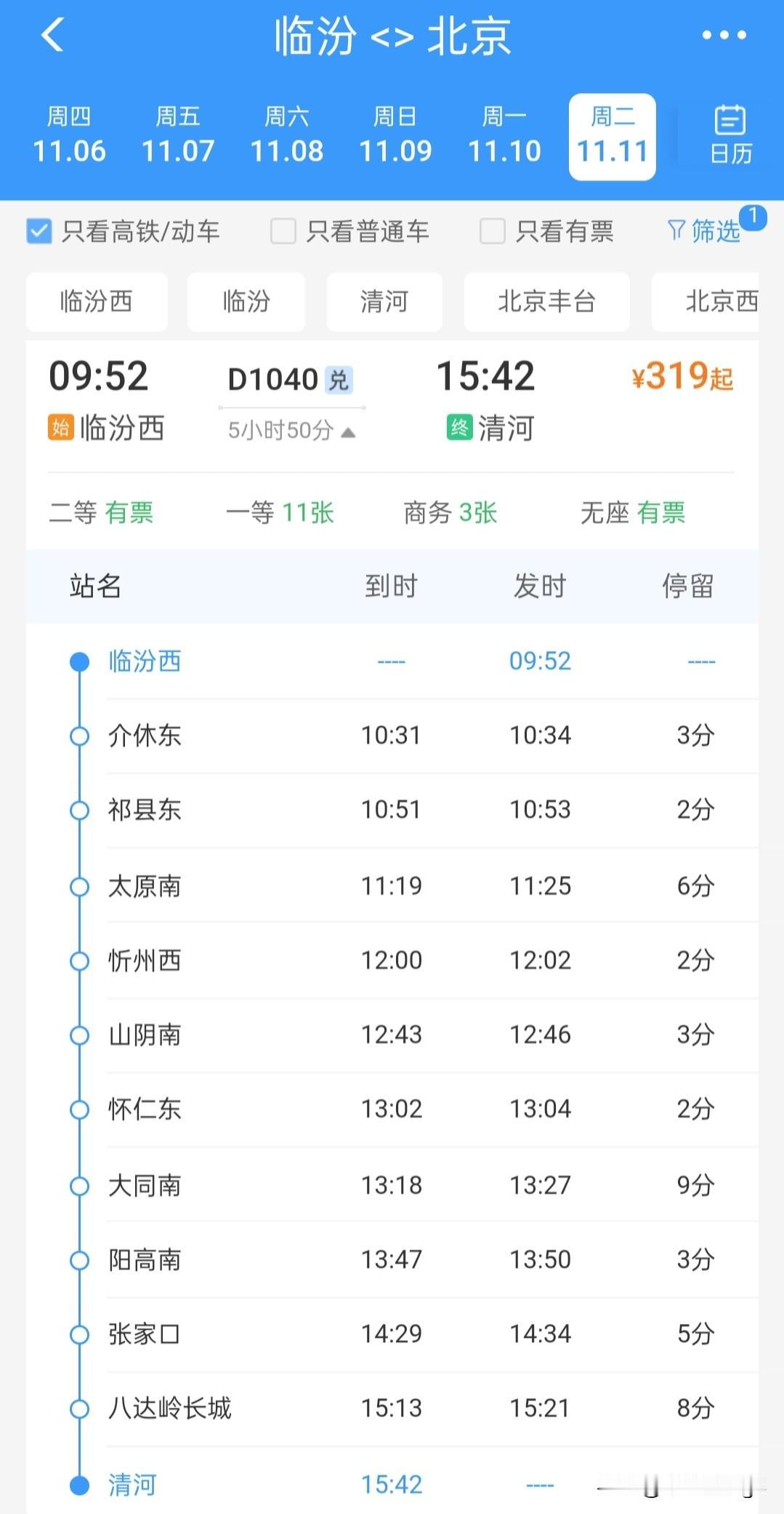 临汾西站有四趟始发列车,途经的线路是时速250公里的大西高铁,有望提速,而且临汾