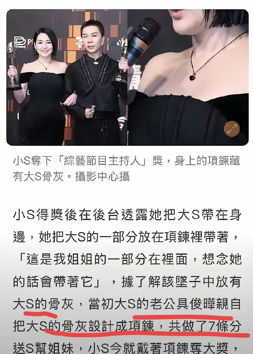 大S的骨灰做成了七条项链