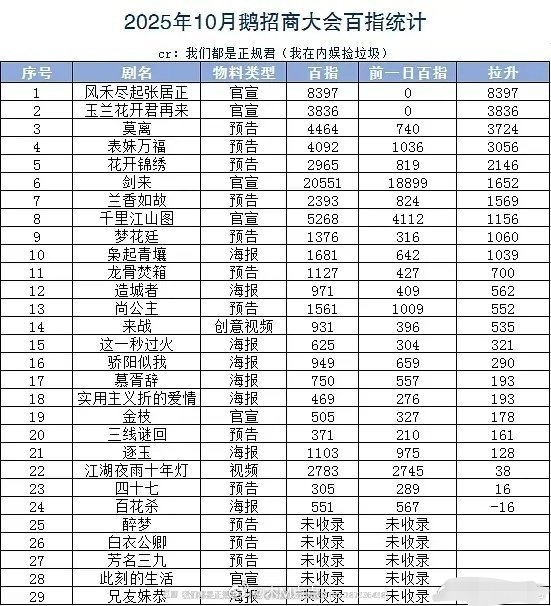 昨日🐧大会剧集百指排名🈶前三:剑来,风禾尽起张居正,千里江山图后三:百花杀,