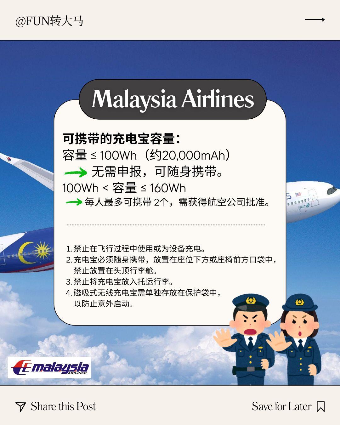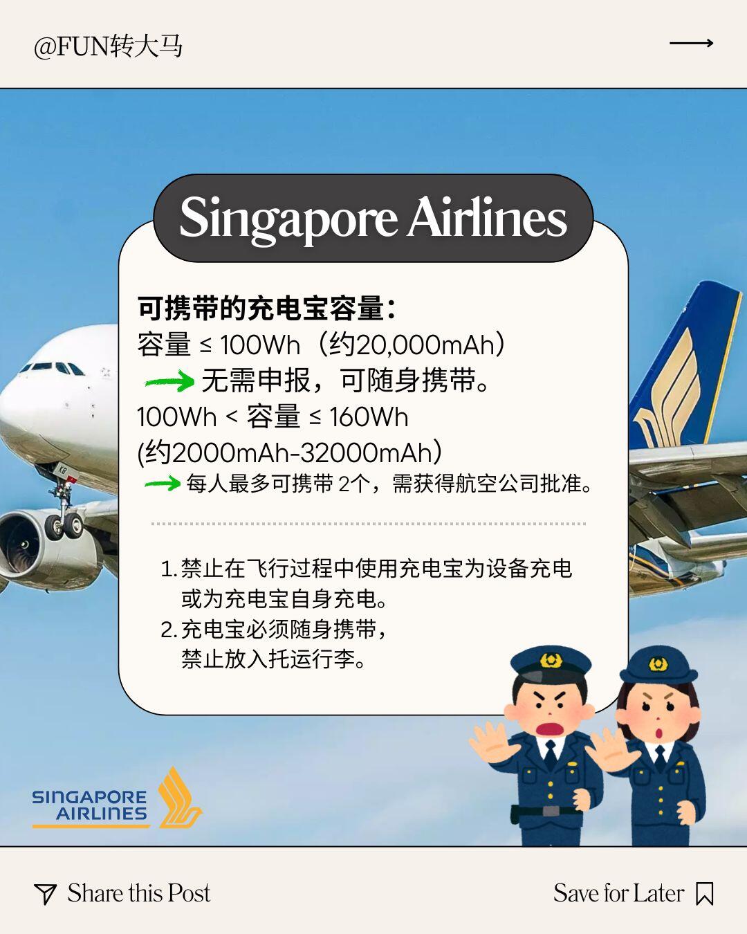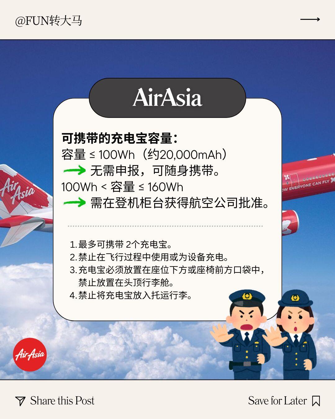 ✈️出门旅行,Powerbank充电宝怎么能少? 但是!你知道吗?原来容量超过规定,可是会被安检“拦下”的!那时上不了飞机就惨了! 📌 来一图看懂各个航空公司的mAh上限,赶紧收藏,登机不慌~