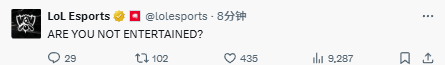 [-]LOL赛事官推:你难道不觉这样的比赛得有趣吗?