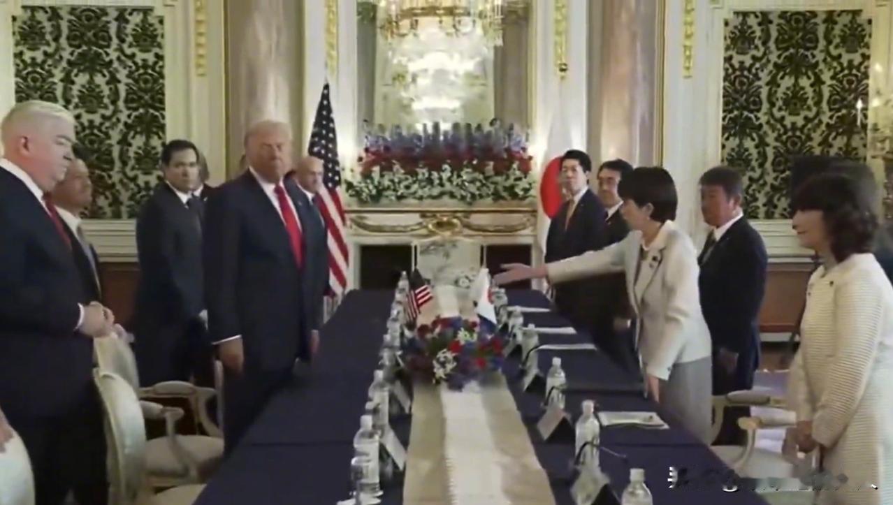 开始汇报工作了? 看上去,这地毯不错,纯棉的! 不知道今天晚宴高市早苗给特朗普吃