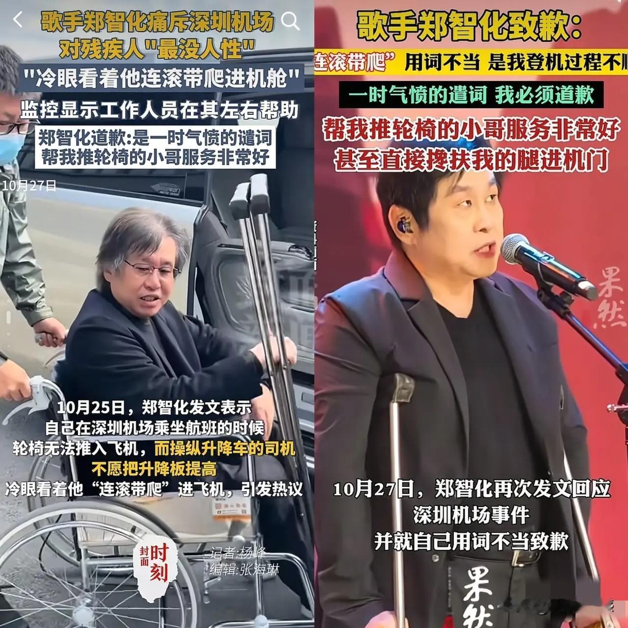 郑智化的名字耐人寻味,似乎是“政治化”的谐音,以前没有注意到这个问题,这几天随着他言论的事情热议,才注意到他名字的与众不同,他这次发文谴责深圳机场服务缺乏人性化的事情,看似是一件小事,但是在当前的大背景下,非常值得深思,他以不实的言论,带偏了很多人的节奏,也让理性的人看清了他的目的,这个人以及这一类人值得警惕!