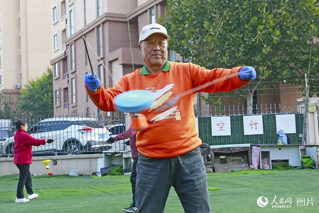 10月22日,天津市津南区双林空竹队进行空竹表演。人民网记者崔新耀摄