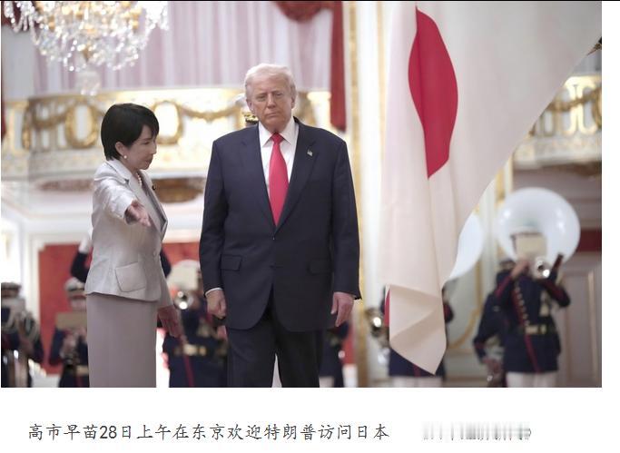 高市早苗对访日的特朗普献殷勤: “日美已成为世界上最伟大的同盟,我希望能与特朗普总统共同开启日美关系的‘黄金时代’。” 个人评论:日本政客看到美国政客,除了卑躬屈膝……就差以身相许了。其实我认为石破茂这个人还是有点气节的,只不过胳膊扭不过大腿,只能不干。高市早苗应该是纯种的鹰犬,对美国言听计从,结果就是日本被特朗普榨干。