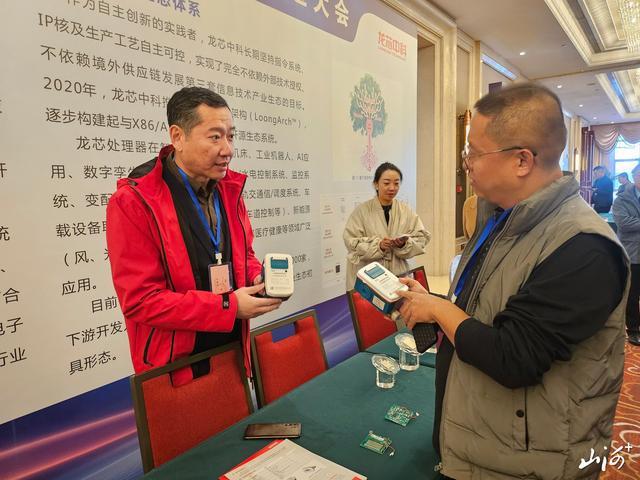 “龙芯1D是龙芯首款全自主化的超声波流量测计量芯片,是国内首款将TDC(时差测量单元)和MCU(微控制器)集为一体,专用于超声波水表、热量表、燃气表测量的SoC芯片。”工作人员为一企业代表介绍着。