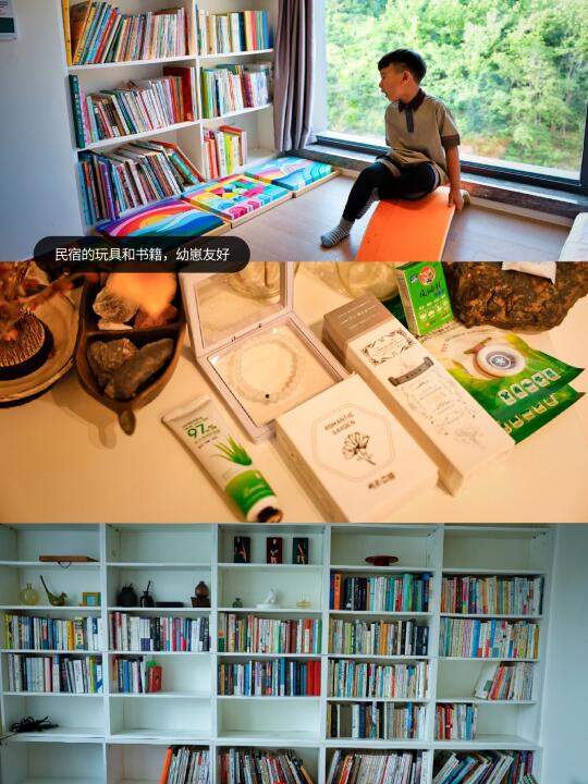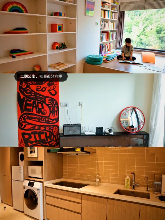 2.二期是公寓,我们这次住的地方,园区中心地带!距亲子中心、山谷小镇街区、大草坪都非常近,附近有一食堂;选的是二期公寓loft山隐书房,有很多幼崽喜欢的玩具,装修走的极简风格,很有家的样子。
