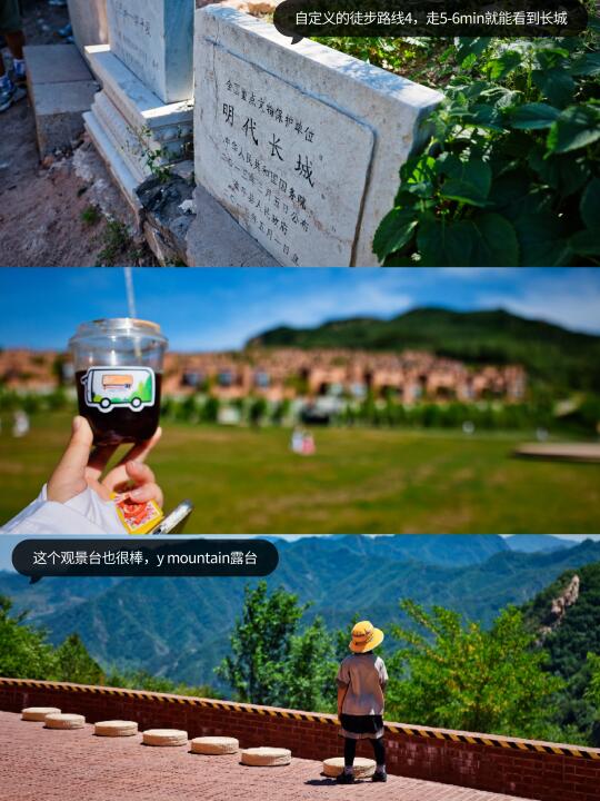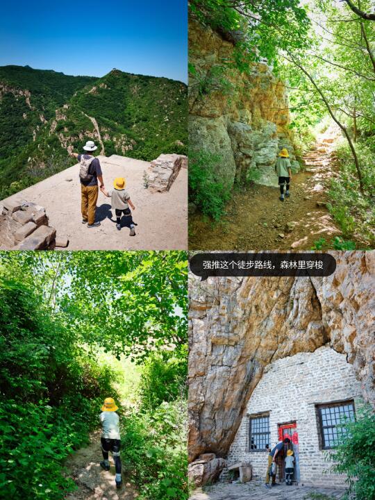 1️⃣户外徒步:推荐!!!官方3条路线。我们走了1(山林访古)+2(林间信步)小环线,3公里,3(山色湖光)终点是人工湖。1和2的路线有烽火台,可以爬长城,林间也舒服。还走了一条mini徒步路线,可以叫它4号路线,大概1公里就可以到达长城,中途还有小溪水,推荐!