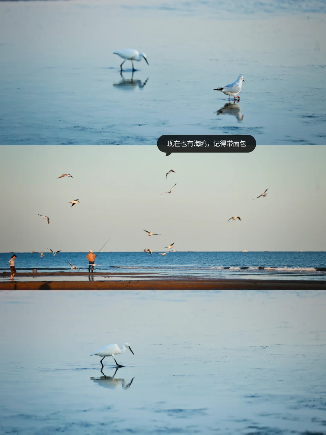 距离蔚蓝海岸车程8分钟,体验出海海钓+追海鸥,今年最新体验的,清晨6点半,不冷不热,找那种石斑鱼生活的石头区域,运气好的话可以连杆,钓鱼结束可以再追个海鸥。出海结束继续在这里赶海,这里的好处就是有礁石,可以找到小螃蟹!