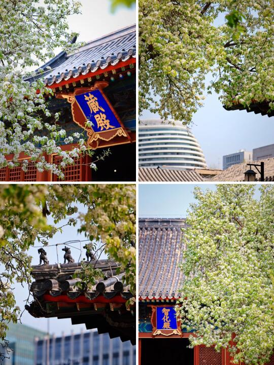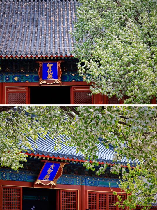 智化寺完整保存着明代初期的建筑规制,三近院落和藻井,智化寺一绝,奉旨建造!和银河Soho的时代对比,也很有特色。梨花真美,丁香也好看,虽然可能约不上,勤刷新,会有惊喜!
