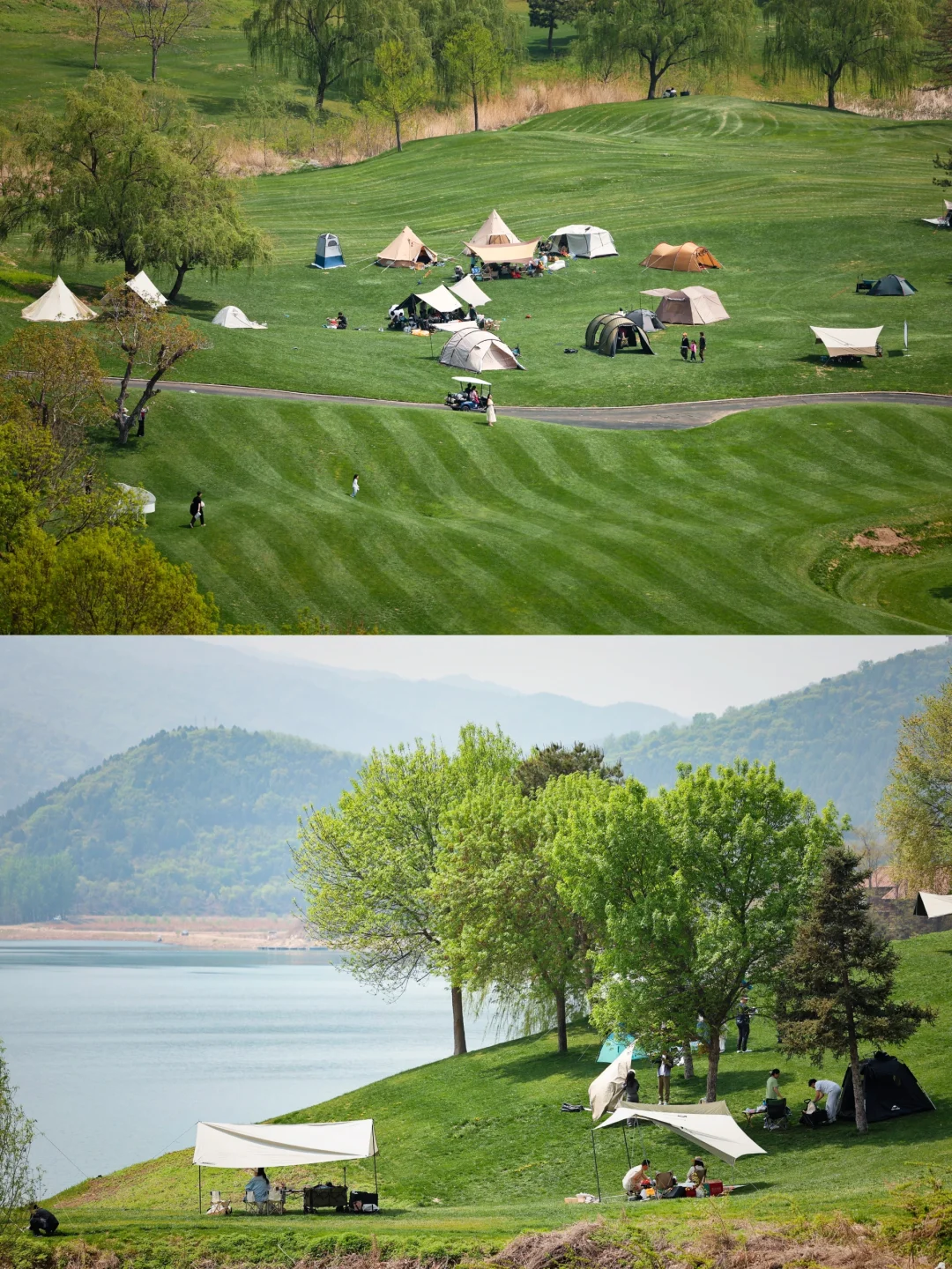④露营推荐:大部分选择微澜山谷或者壹号酒店东侧,萌宠乐园北侧露营也很舒服。