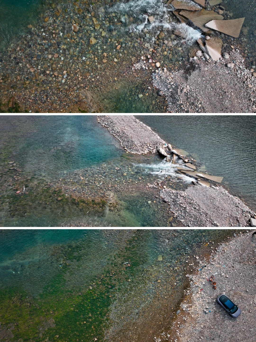 👉导航四渡桥、六渡桥下, 车都可以近距离接触河畔,两个地方风景都很赞,没有挖掘机、没有工程车,只有抬头可见的峰林和低头清澈和谁。