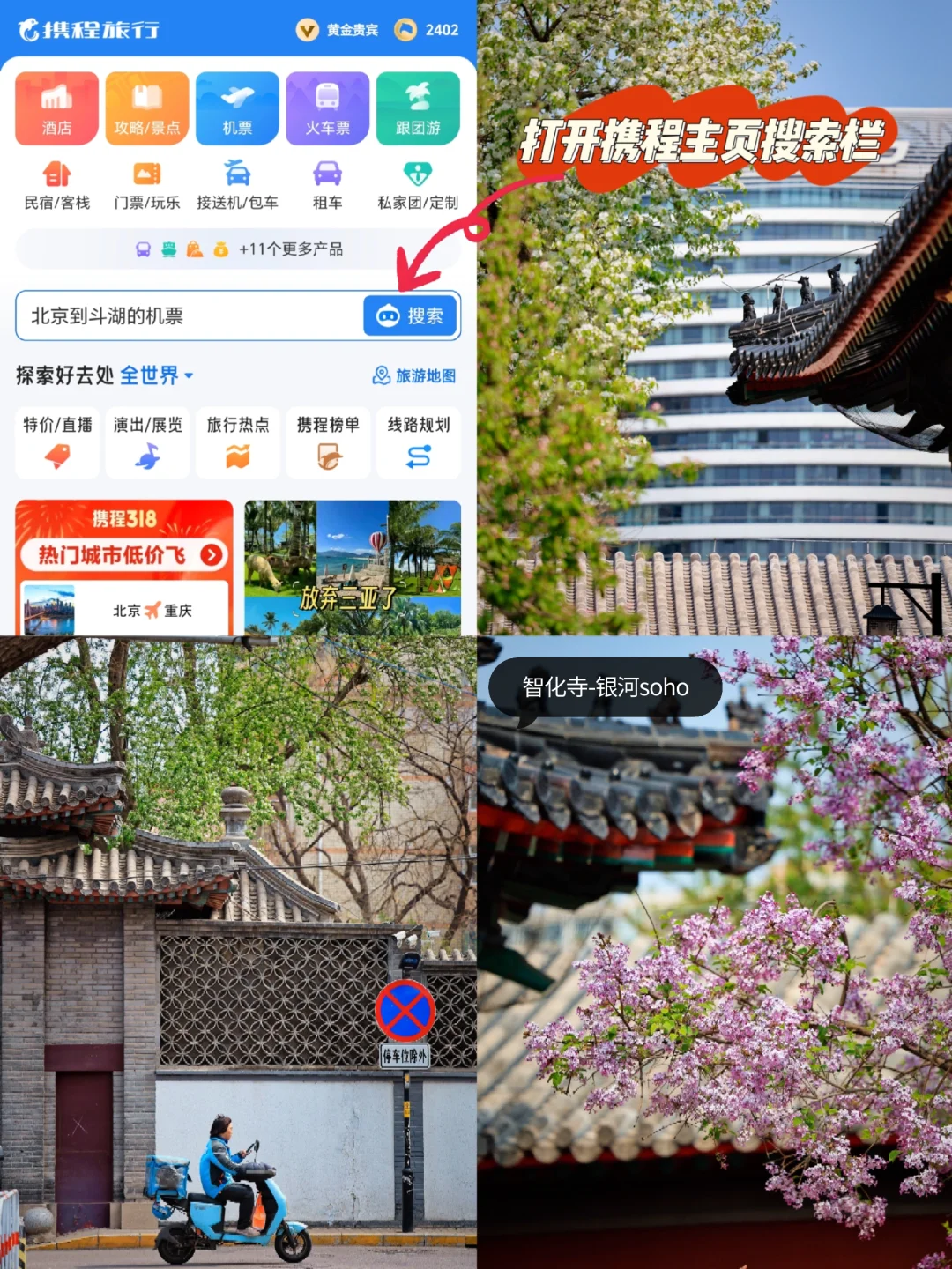 北京的春天终于到了 喜欢北京的原因大概是因为 四季分明,爱恨清楚,冬虽漫长,但春必将至。 北京二环里的胡同街道我是真爱! 推荐几条经常逛的胡同路线, 春季看花、夏季乘凉 冬天赏秋、冬天等雪那种 . 最近来北京,买 机票可以去逛逛携程,现在有可以无门槛领取【携程机票立减券】 👉打开携程,搜索【飞豚】就可以领取165元的券包,包含全国往返50💰,出境往返60💰,境外单程30💰和境内单程25💰,特价机票也可以叠加使用~ . 另外飞黑龙江和新疆的小伙伴们,上携程搜索“黑龙江自由飞”“新疆自由飞”就能get超值往返次卡!✈也不用担心受价格波动影响啦~ . ✔️都是大致路线,选定区域按照心情走 ✔️都是胡同+博物馆+小店+公园的结合 ✔️适合地铁+骑或者步行,不适合开车 ✔️每个地方都可以留出半天时间。 . ①五道营—国子监街—北锣鼓巷—钟鼓楼—什刹海—西海湿地 . ②故宫角楼—景山公园—东景缘—中法大学旧址—77文创园—北大红楼—紫金书院—故宫角楼 . ③景山公园—故宫角楼—西什库教堂—广济寺—白塔寺—鲁迅博物馆 . ④东郊民巷—圣弥尔教堂—法院博物馆—警察博物馆—铁道博物馆—正阳门—国家大剧院—国家博物馆 ⑤北京坊顶层—前门清真寺—杨梅竹斜街—琉璃厂东街—樱桃斜街—93号院博物馆 ⑥三里河公园—春风习习咖啡馆—大江胡同—法源博物馆—好景胡同—西打磨厂大街—西兴隆街 . ⑦银河soho—智化寺—禄米仓胡同—史家胡同博物馆—本司胡同—演乐胡同—南礼市胡同 ⑧烂漫胡同—七井胡同—宣南书店(法源寺店)—法源寺—尼岔—宣南书店(琉璃厂店) ⑨王府井天主教堂—西总布胡同—东总布胡同—小牌坊胡同 .