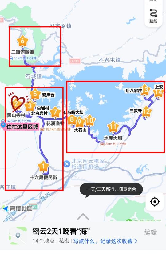 ②两日游就根据地图路线增加环节,大坝/采摘/观景台都可以