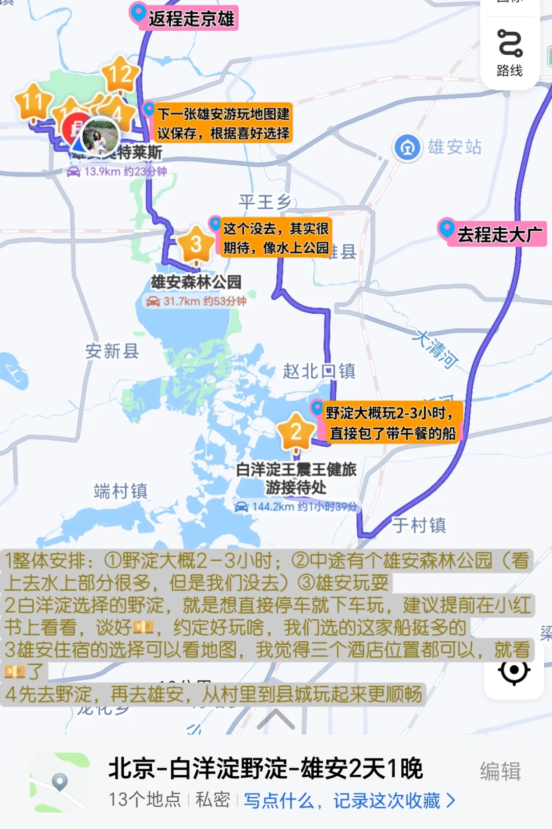 3️⃣顺序:先去野淀,再去雄安,这样玩起来很顺畅,相当于从村里玩到县城!