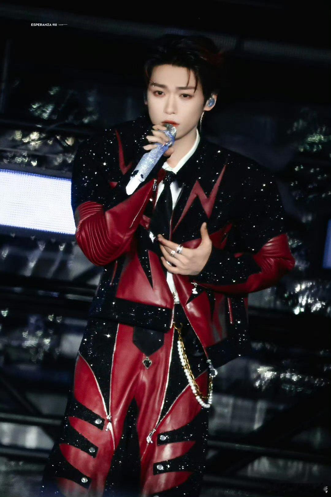 梓渝演唱会眉钉红色皮衣造型有[污][污][污]野性痞帅质感啊[污][污]这个梓渝越来越会了