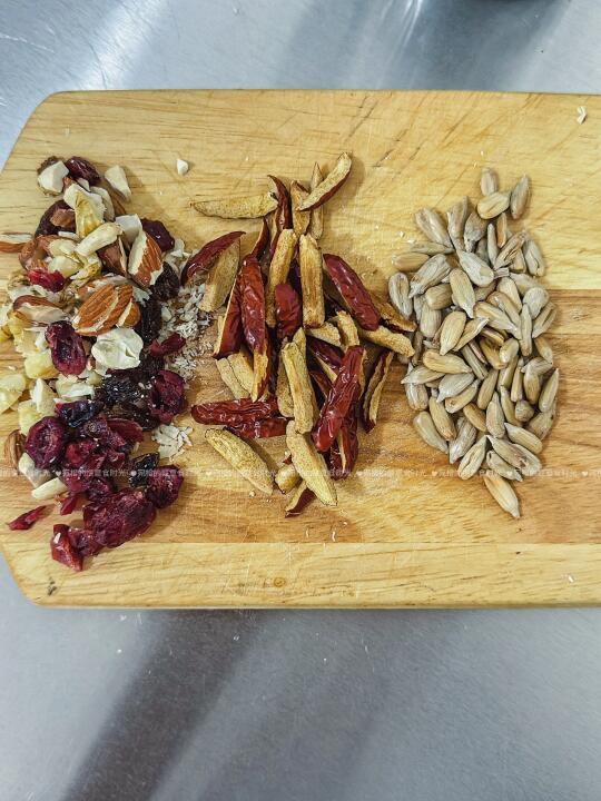 黑芝麻粉、瓜子仁、红枣、核桃、杏仁、蔓越莓、葡萄干适量(也可按照自己的喜好放)