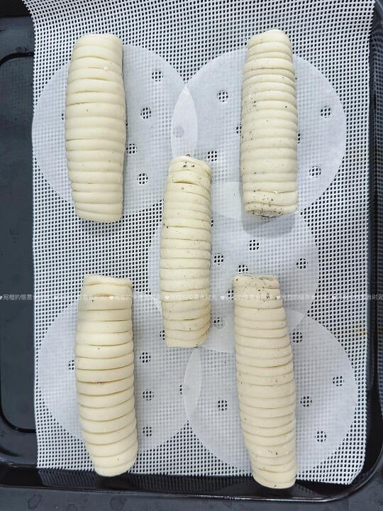 2、250g面粉里加入2g酵母和120水混合搅绊成絮状,揉成团,醒五分钟,分成大小均匀的剂子