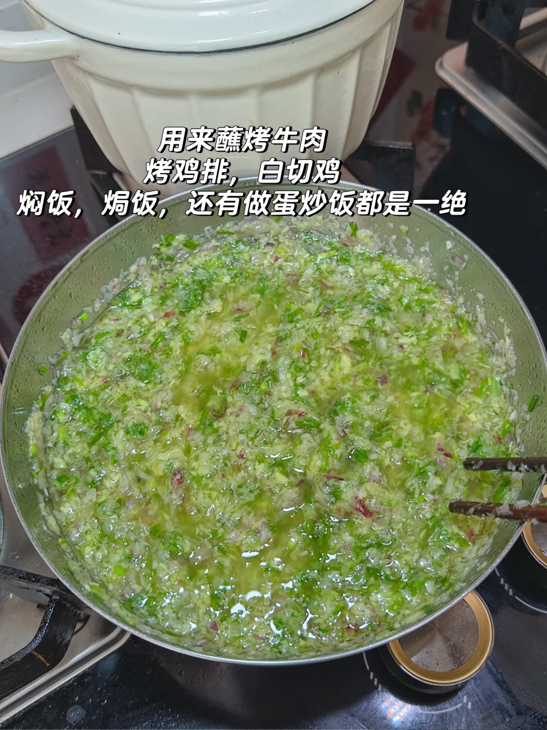 给你们推荐这个焖饭、炒饭,蘸肉都巨好吃的酱料 蘸白切鸡、拌面,烤鸡排、蘸烤牛肉都一绝!!! 尤其是炒蛋炒饭香倒没边,巨巨巨好吃😋 / 🌼🌼🌼食材 香葱、生姜、油 / 🧑🏻🍳🧑🏻🍳🧑🏻🍳做法 1️⃣.把香葱、去皮生姜洗净沥干水分 2️⃣.用料理机分别把姜香葱都打碎,放在一个碗里 3️⃣.把油烧热分次浇入 每次可以多做一点,用密封罐放冰箱保存起来,要吃的随时拿出来,做蛋炒饭的时候来这么一勺,真的是香到天灵盖