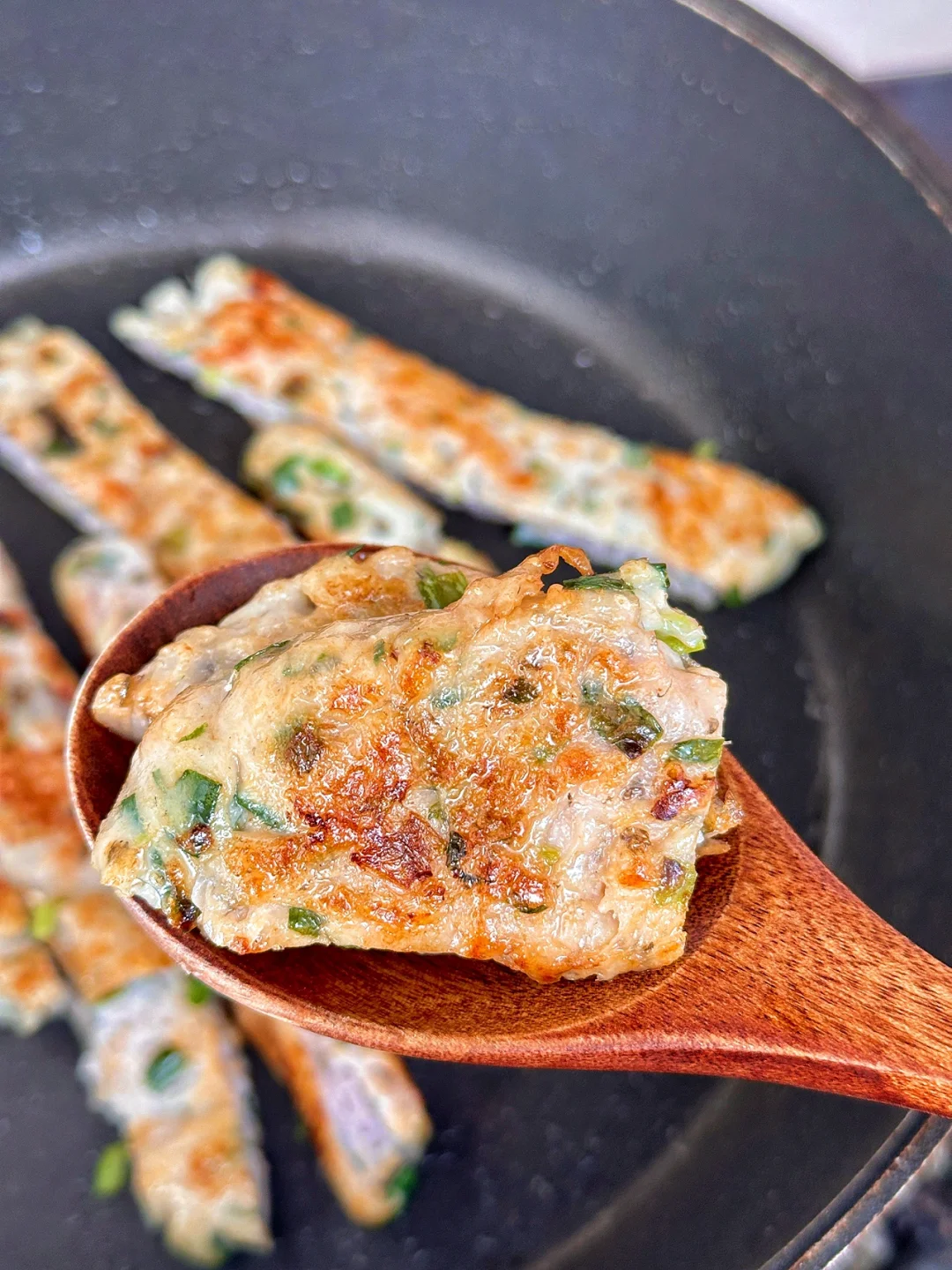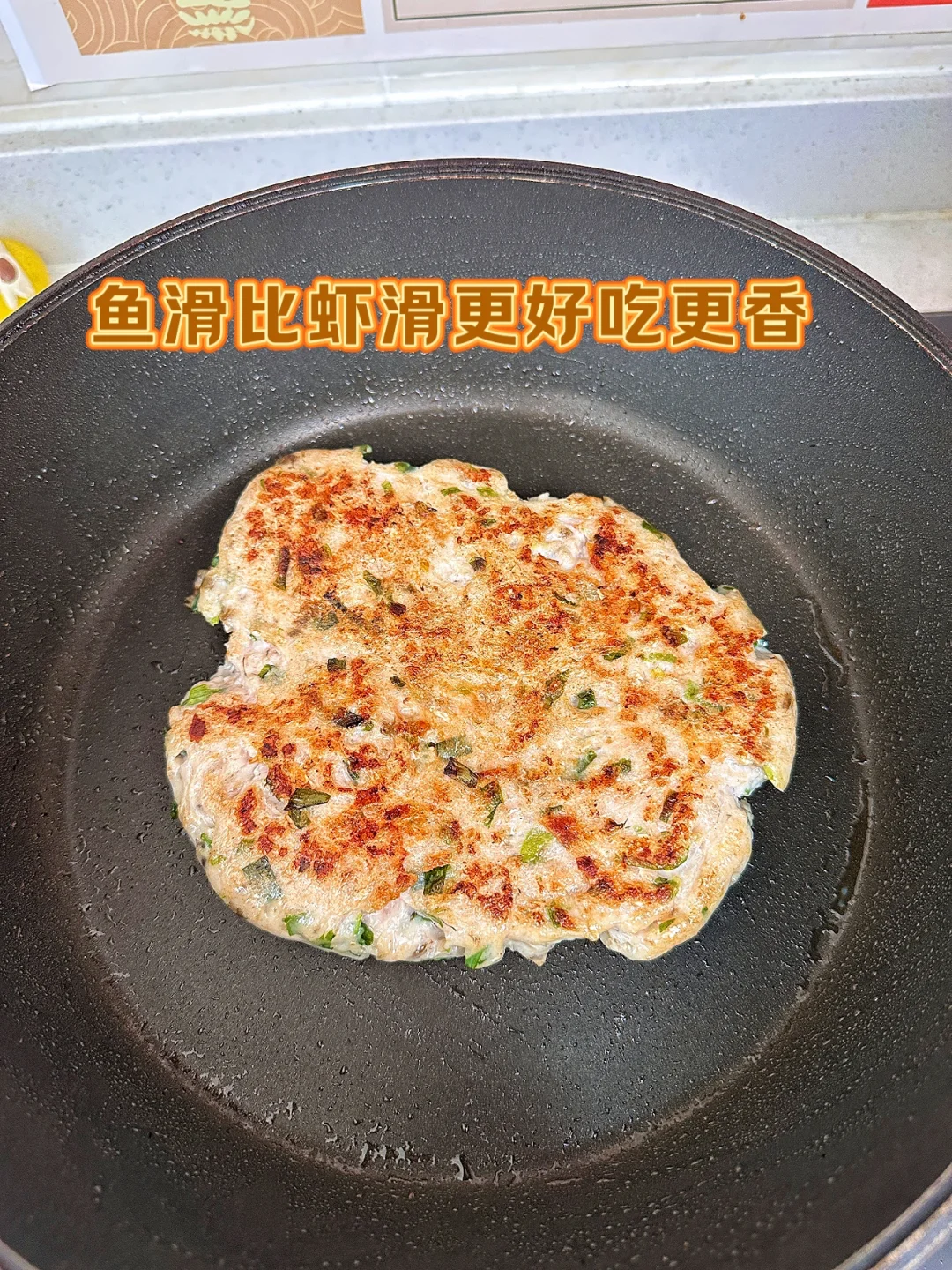第三个鱼滑,买回来的鱼滑直接小火香煎,不需要在调料,它买回来的时候已经调好味道了的,个人感觉比虾滑更好吃,又鲜又q弹。