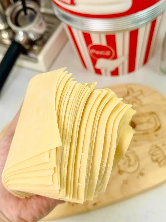 2️⃣用压面机从厚到薄的压,一边压一边扑点玉米淀粉(玉米淀粉即能防沾也能增加口感)