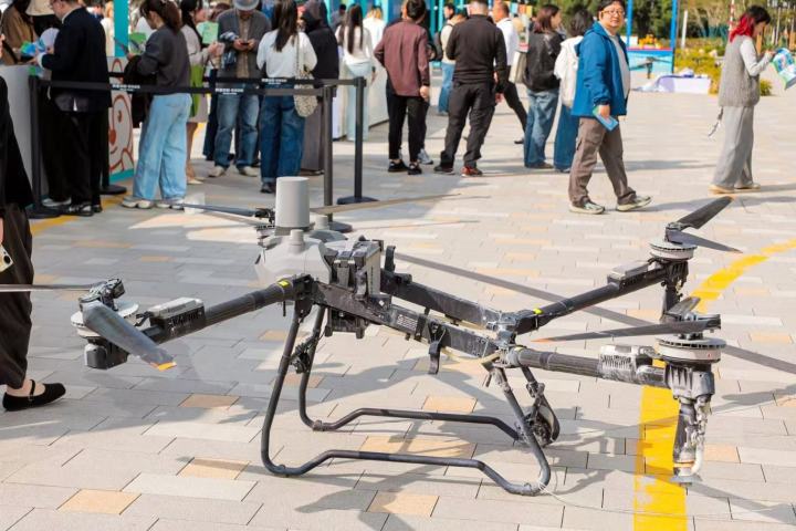 空中,无人机穿梭往来,化身“空中快递员”,它们自动精准降落,精准投递纪念礼品。人群中传来阵阵惊呼,这是科技带来的惊喜,也是未来生活的日常预演。