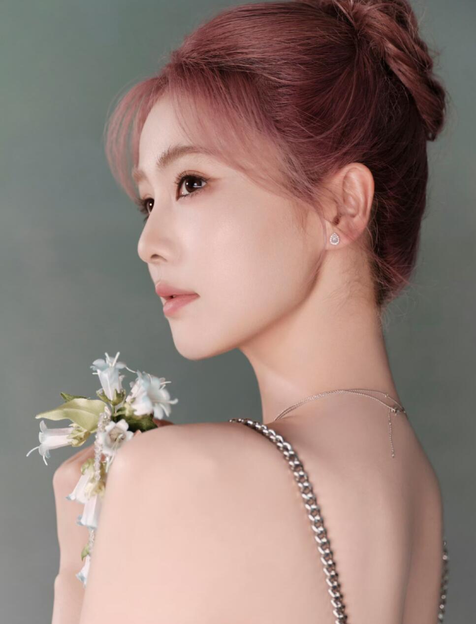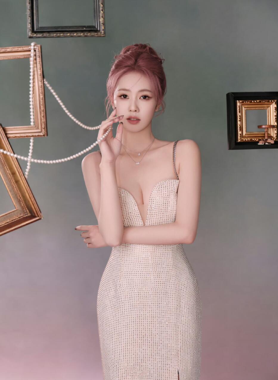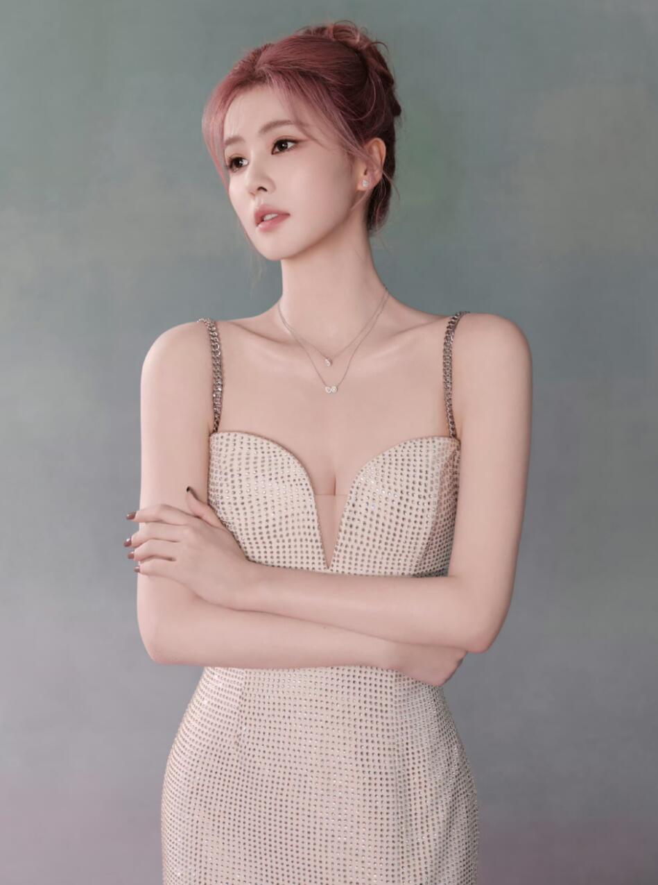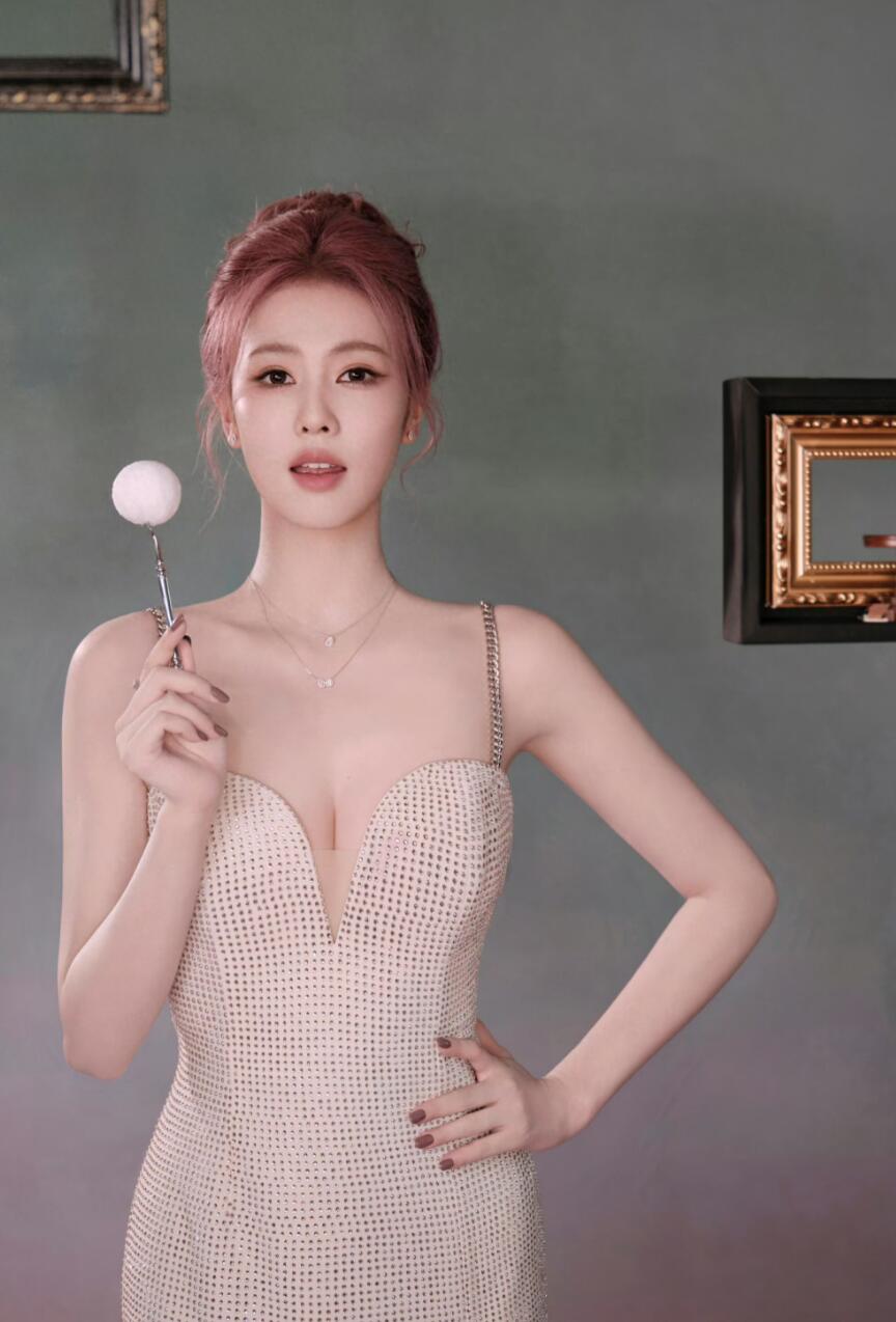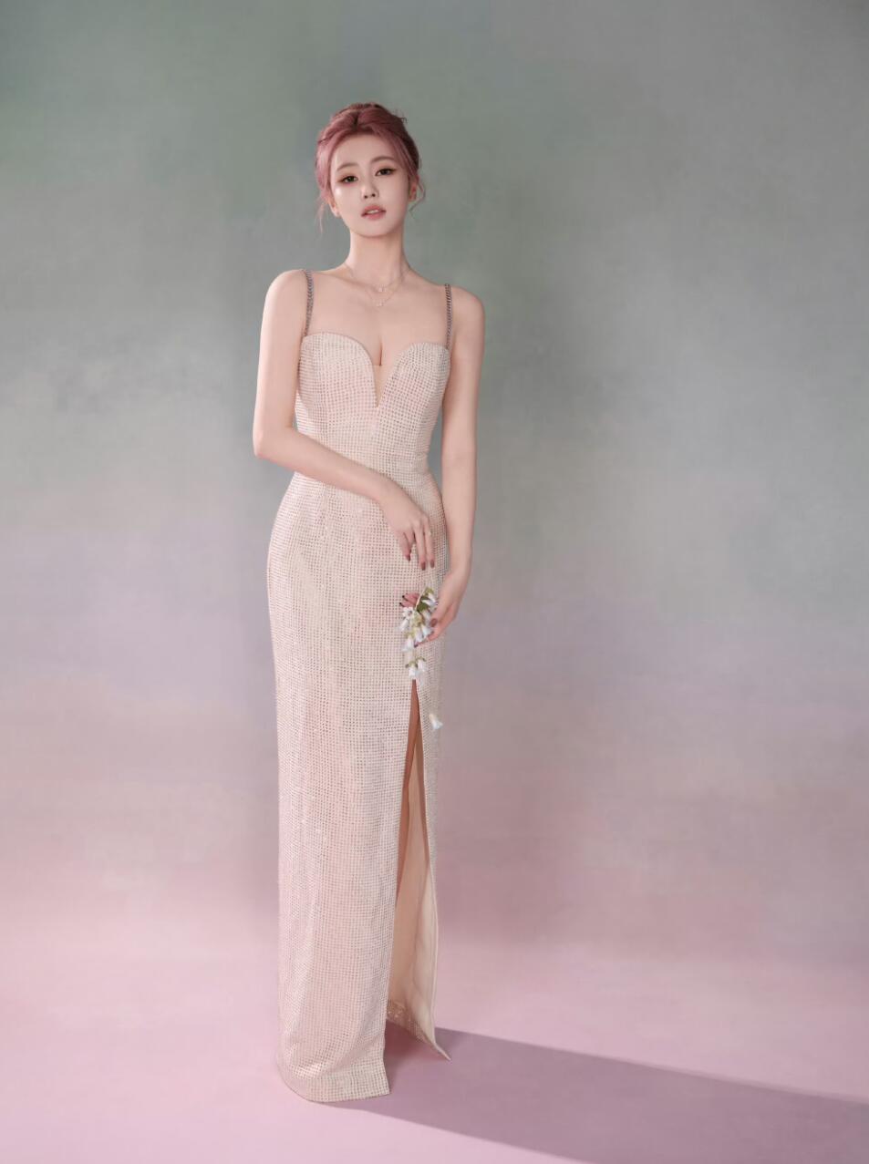 白鹿以一身银白长裙亮相,粉发让她看上去少了几分血色充盈的美