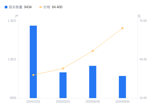 日期A股户数(户)流通A股户均持股数(股)户均持股市值(万元)2025-09-3094345244.4733.772025-06-30100924902.5322.892025-03-3196674510.0714.892024-12-31126953434.339.602024-09-30103834199.0611.132024-06-30123593527.707.242024-03-31101424298.849.982023-12-3199864366.0014.122023-09-30109773971.8413.812023-06-30107894041.0512.95