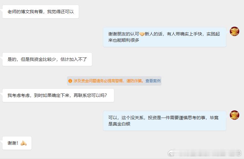 因为一对一能确保每位朋友加入后,都能获得专属的跟进和针对性的策略。如果拉群,信息繁杂,容易被群里的各种声音干扰,甚至错过重要内容。虽然建群对我们来说更省力,也能同时跟进更多人,但我们觉得没必要,因为我们的目标,是真正带大家稳健前行,而不是图省事。