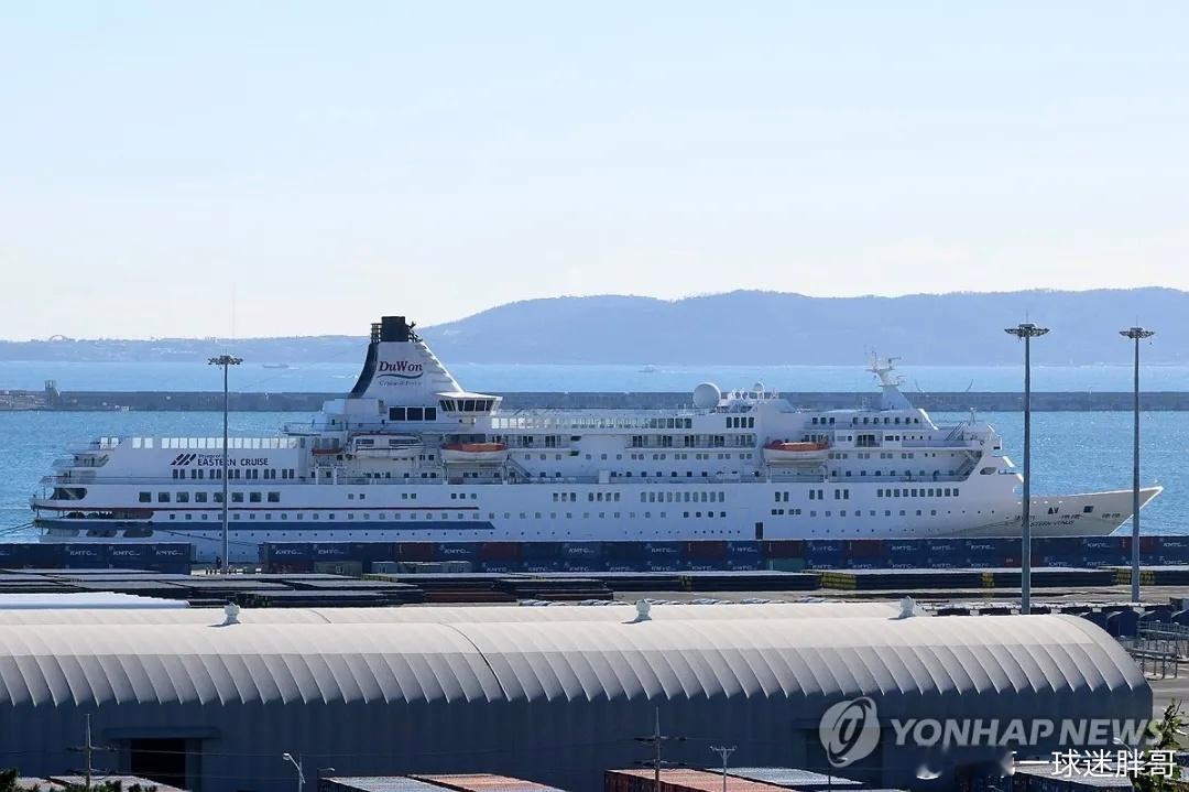 图二:10月28日,“东方维纳斯”号邮轮停靠在位于韩国庆尚北道浦项市迎日湾港。 韩联社