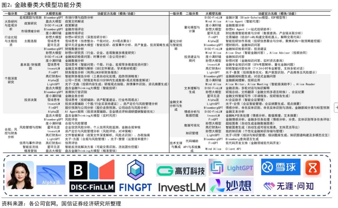 金融垂类大模型以深度行业Know-How与业务流程嵌入能力为核心,专为金融场景构建从投研、风控到运营的全链路解决方案。金融垂类大模型凭借其专为金融场景设计的底层架构与行业特定数据训练,在业务精准度和流程嵌入深度上展现出显著优势。其共性在于深度融合金融业务逻辑,在投研分析、合规风控、量化交易等核心场景提供高精度专业解决方案;特性上则呈现高度垂直细分:BloombergGPT以金融市场数据解读见长,LightGPT实现投研、合规、运营全流程闭环服务,星环无涯专注风控与反洗钱技术,盘古大模型强化政策研判能力,形成覆盖前中后台的专业化矩阵体系。这些模型通过领域自适应训练、多模态金融数据融合及实时计算优化,有效支撑从高频交易到长效风险管理的全周期业务需求。