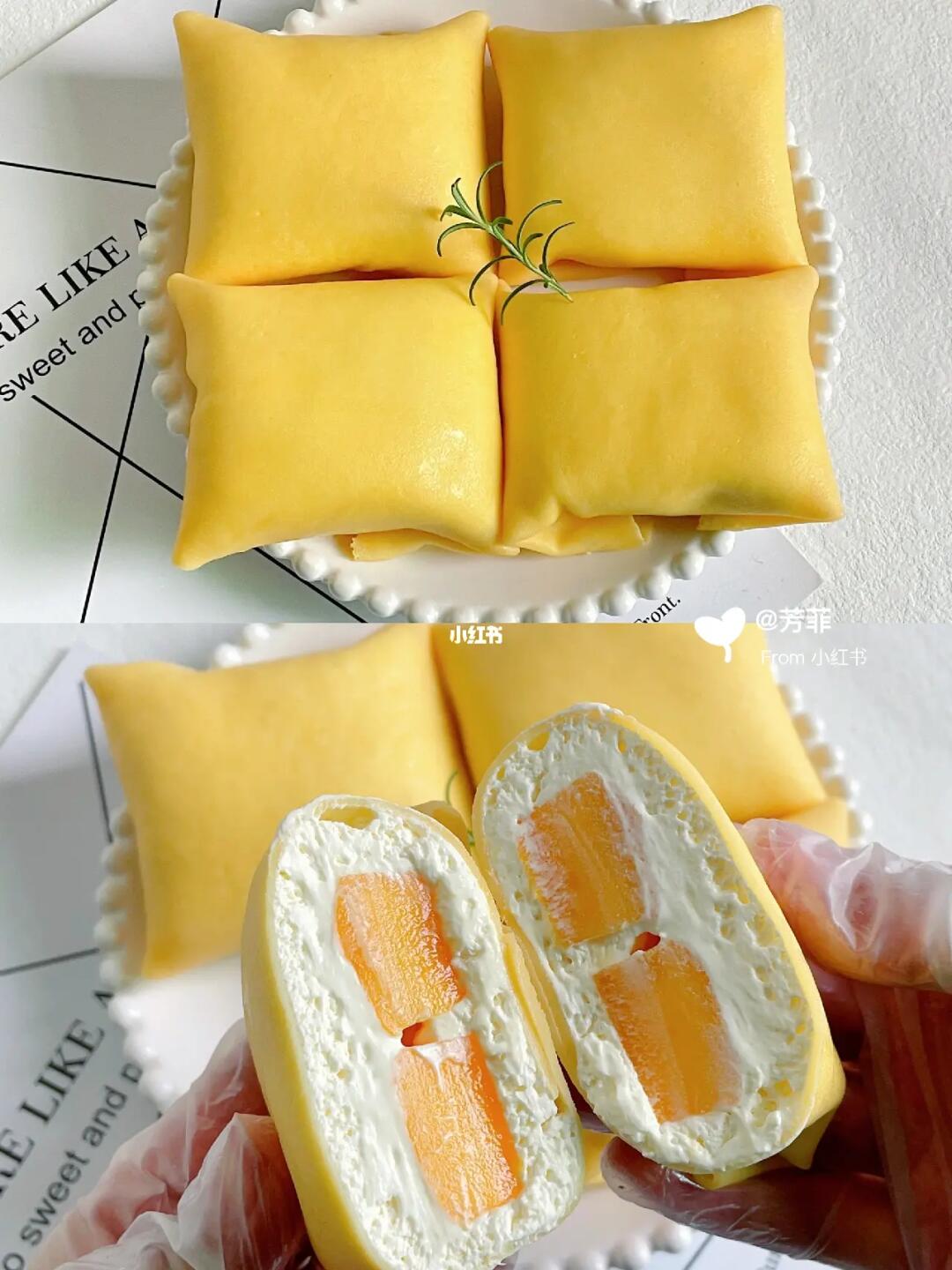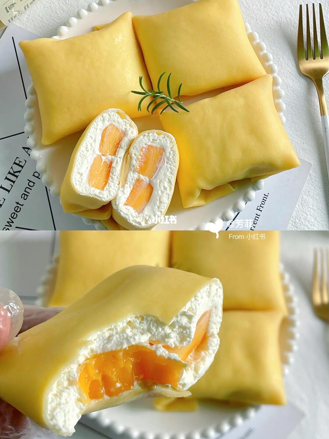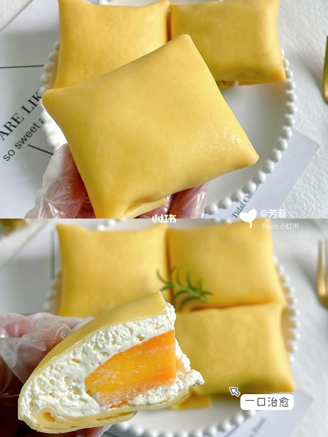 💫💫软糯的饼皮包裹着香甜的芒果和奶油,胖嘟嘟软fufu的.一口下去冰凉解暑敲治愈!👉🏻简单零难度新手友好,快安排起来吧💃🏻💃🏻
