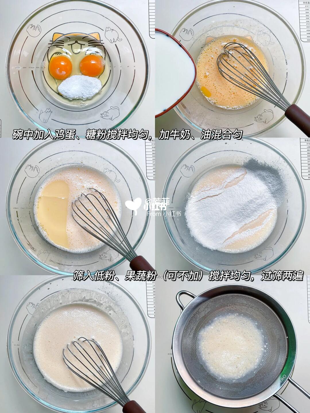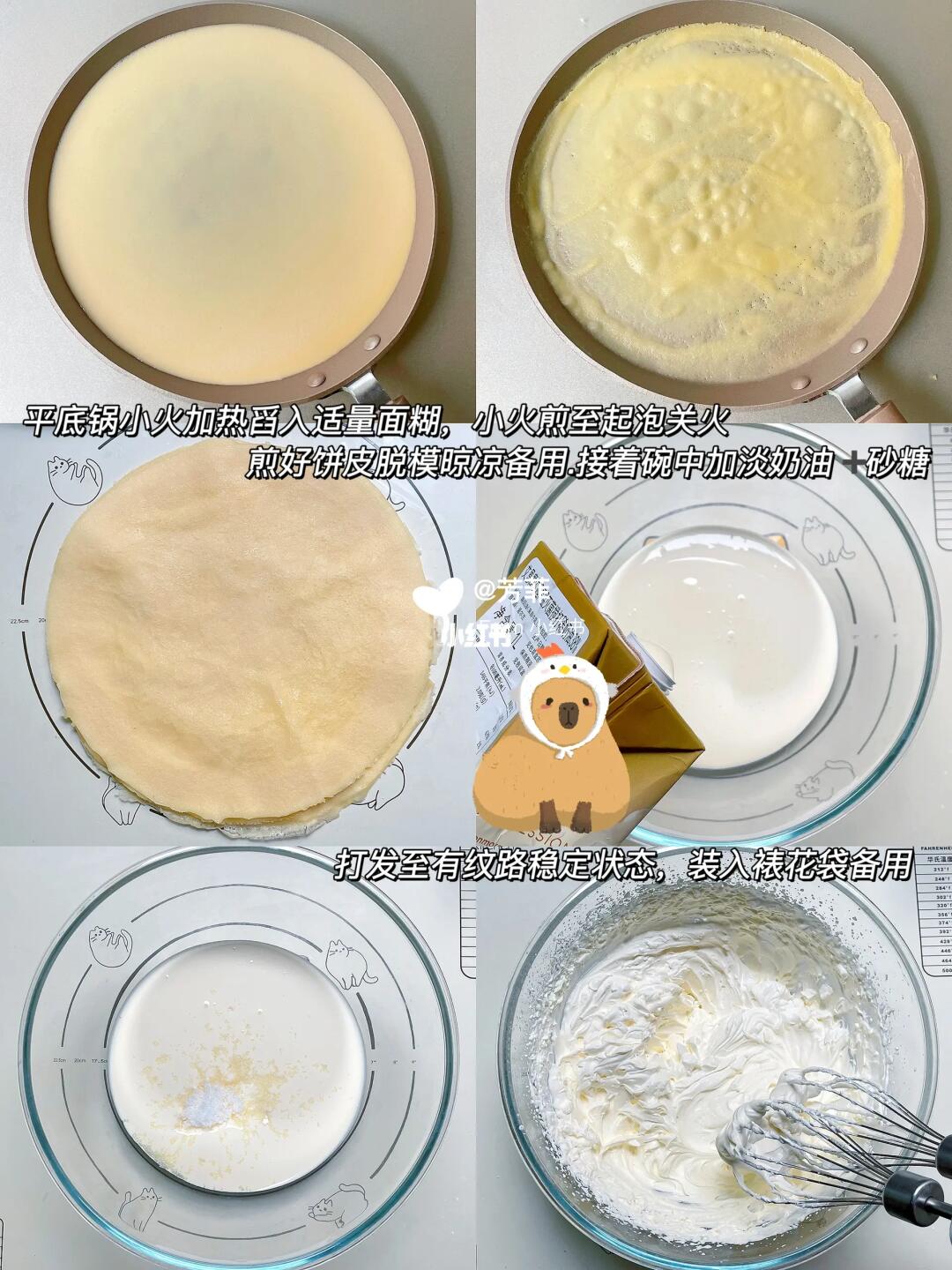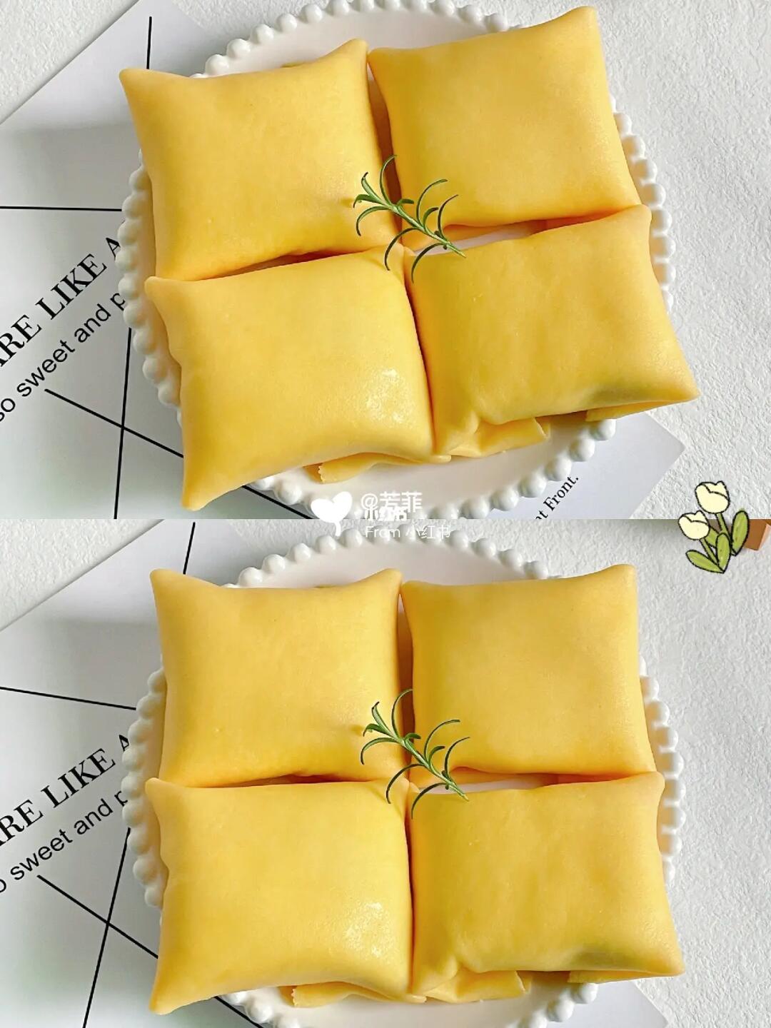 🔸班戟饼皮:鸡蛋2个 糖粉20克 牛奶180克 玉米油10克 低粉55克 芒果粉或南瓜粉5克(可不加)