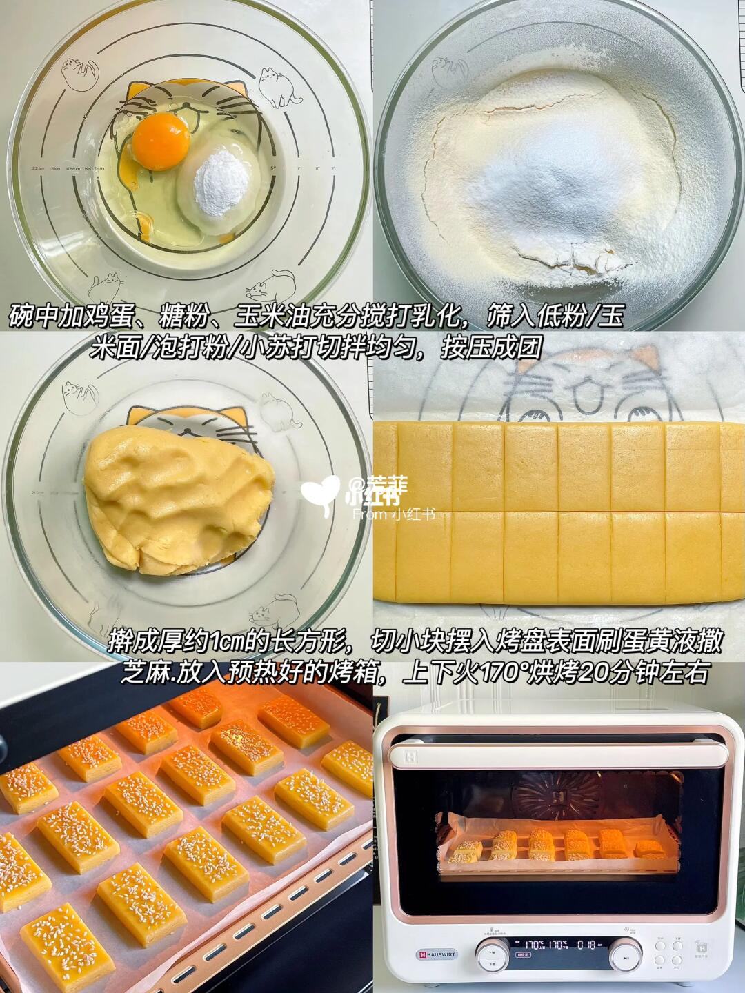🔸食材:低粉120克 玉米面80克 无铝泡打粉4克 小苏打1克 玉米油70克 糖粉40克 鸡蛋一个/带壳约60克左右
