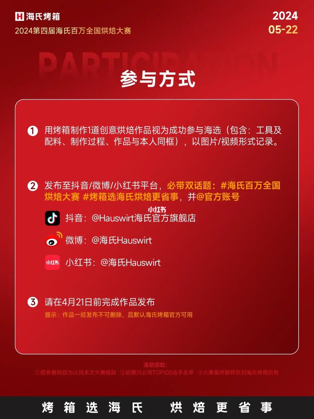 🎉参与方式非常简单:只需要在5月5号之前按规则发布烘焙笔记即可,详情查看海报(图5~9)