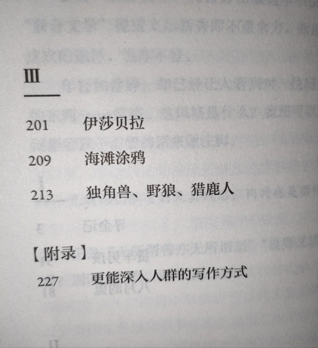 第三集的《伊莎贝拉》《海滩涂鸦》《独角兽、野狼、猎鹿人》三篇说实话没太看懂,意识流创作谈式的写作,过于先锋,感觉像是实验,不过收在这个集子里倒也恰如其分,风格统一。