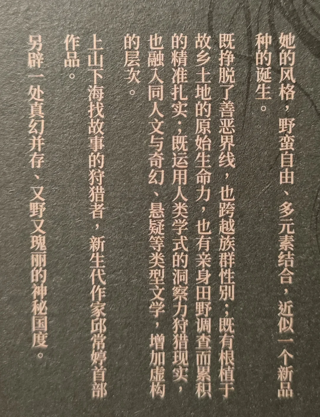 十个短篇中,《寻金记》《货车男孩》《八月的鬼》《山鬼》等四篇我最喜欢,成长、生存、生死、神鬼、亲情,像回到了自己的童年。