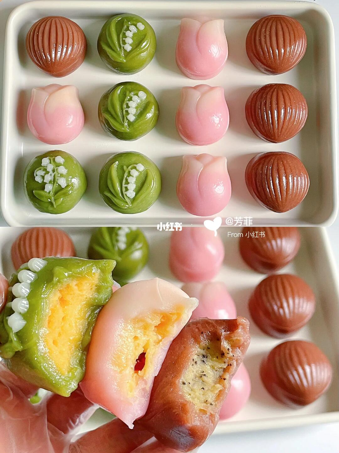 🌸趁假期做了春日里的「花花」青团,颜值担当有颜有料.🐾三个口味的奶黄馅,伯爵红茶/咸蛋黄/椰蓉蔓越莓,软软糯糯好吃不腻.做法简单不翻车,亲测放三天都不怕硬!💃🏻💃🏻小仙女们快做起来吖