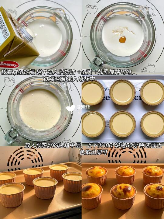 ✔️挞液:淡奶油180克 蛋黄2个 炼乳或糖粉25~30克