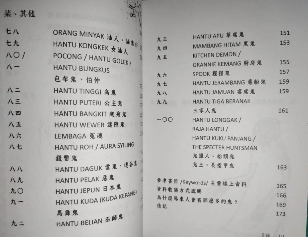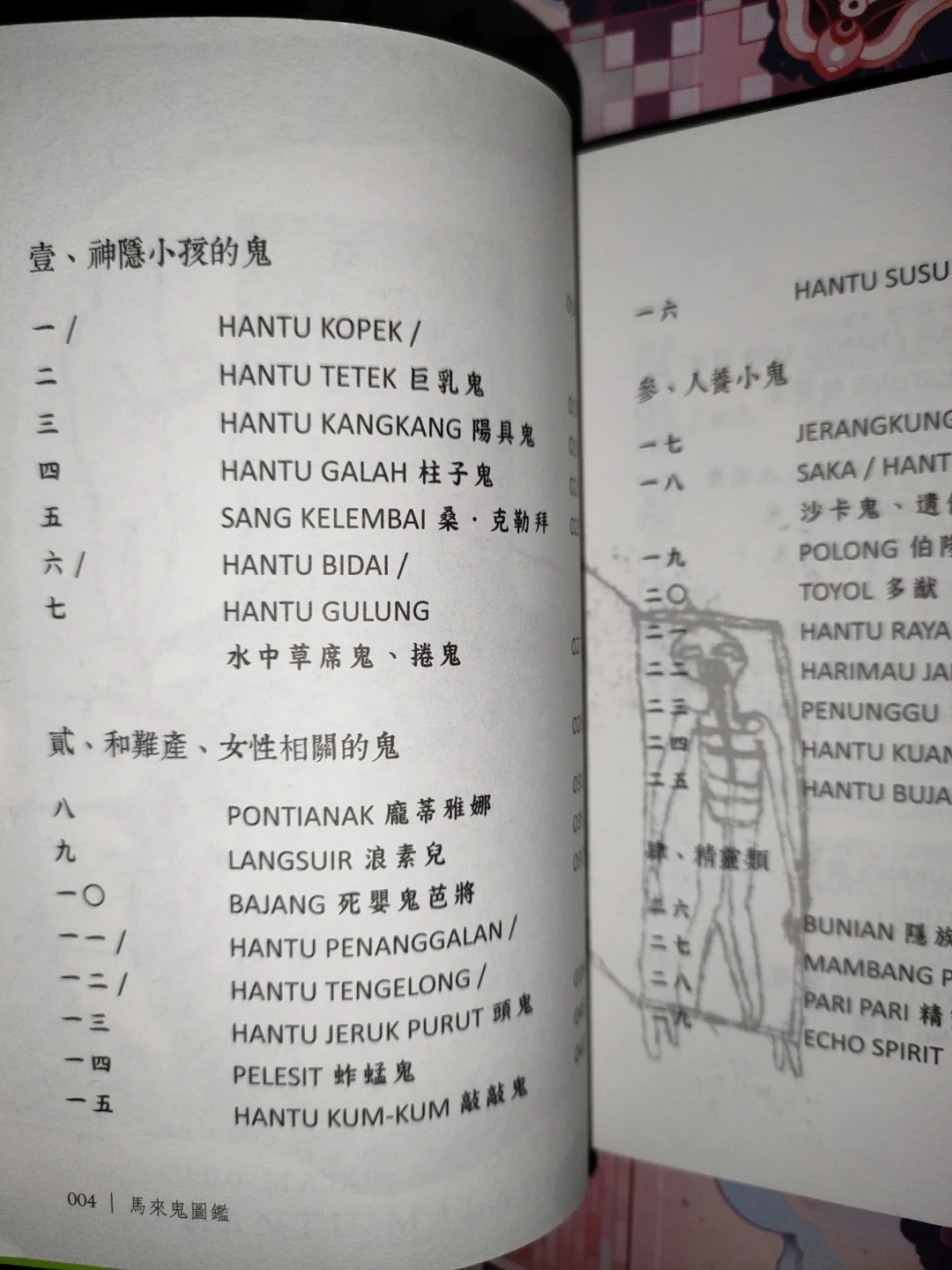 【幽冥志】No.001《马来鬼图鉴》 🍁作者:马尼尼为(马来西亚) 🍁版本:繁体 🍁内容介绍 “魂,是有人形的,像血那样红。” 史上少有的马来西亚鬼怪大收集——巨乳鬼、阳具鬼、草席鬼、庞蒂雅娜、沙卡鬼、伯隆、精灵、洞鬼、泥鬼波大、红人头鬼……配合趣味十足的插图,让你一次看个爽。 这不仅是一本茶余饭后聊作消遣的猎奇读物,更是一本灵异怪谈题材创作值得拥有的手边工具书。 不过话说回来,明明开本如此袖珍,怎么敢定价这么高啊喂! ps:完整目录图片附在最后,以供参考