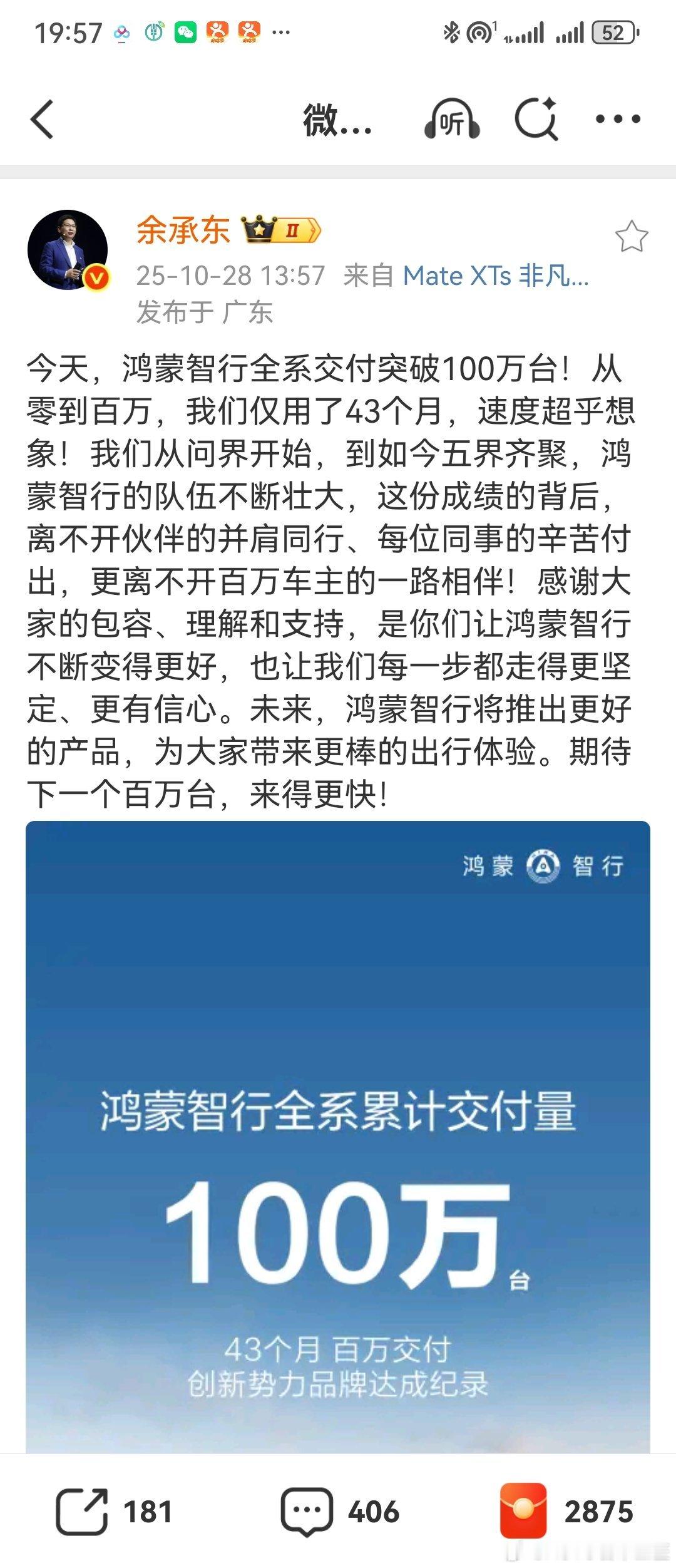 鸿蒙智行全系交付突破100万台!从零到百万!我仔细看了小字,没毛病![doge]
