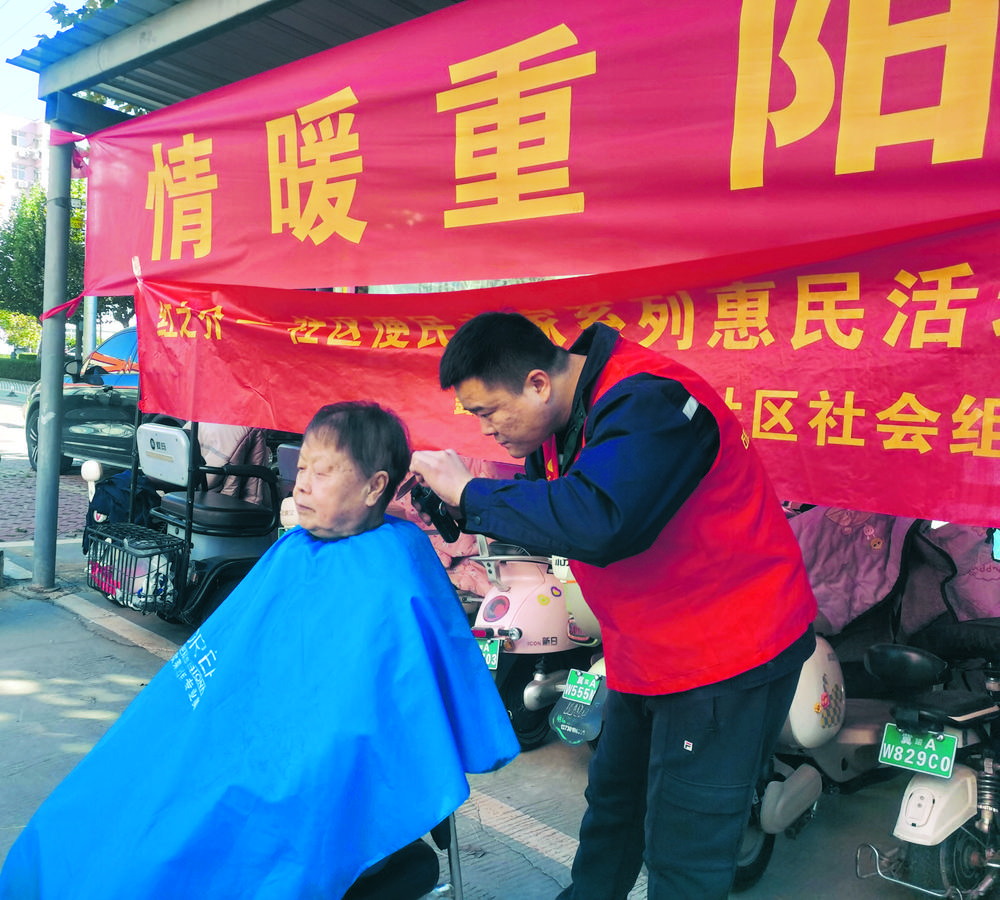 重阳节前夕,志愿者走进石家庄市鑫城社区,开展“情暖重阳爱心义剪”公益活动,志愿者们为社区老年人义务剪发,开展尊老敬老志愿服务。