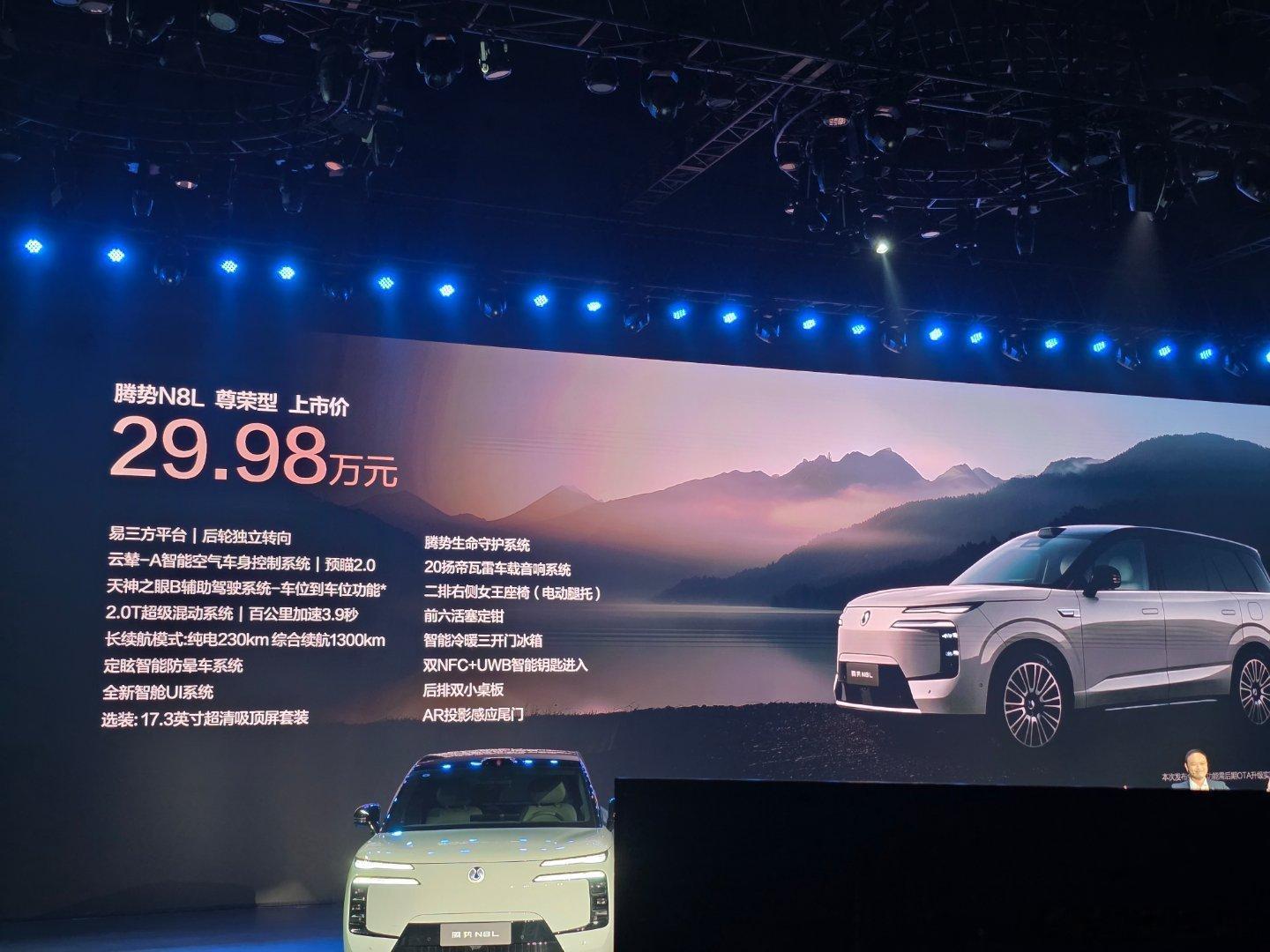 更惊喜的是价格,尊荣型29.98万、旗舰型32.98万,比预售还便宜2万,连BBA同级别零头都不到。但配置却狠得离谱:云辇-A双腔空悬、激光雷达城市NOA全系标配,17.3英寸吸顶屏、帝瓦雷音响这些百万级配置也没缺席,5米2的大车转弯半径才4.58米,还自带防晕车系统。大六座SUV首选腾势N8L29.98万起腾势N8L