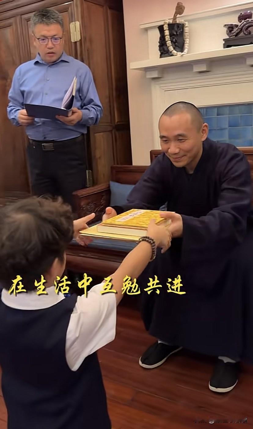邹市明和冉莹颖的小儿子正式拜少林寺第三十四代弟子释延光为师傅,师傅给他赐名释恒一。 冉莹颖曾说,孩子虽小但战斗力很强,两个哥哥都曾被他打伤。 他喜欢武术,也很活泼,嘴甜,刚拜完师傅就,一口一个师傅的叫,跟师傅很亲,他也只是个六岁的孩子。 视频中有一个镜头是,他喊他师傅,让他师傅打人,指着说,打他,打他。他师傅说,学武术不能打人。 不难看出这孩子需要名师引导,这也可能也是父母让他拜师的用心之处吧!