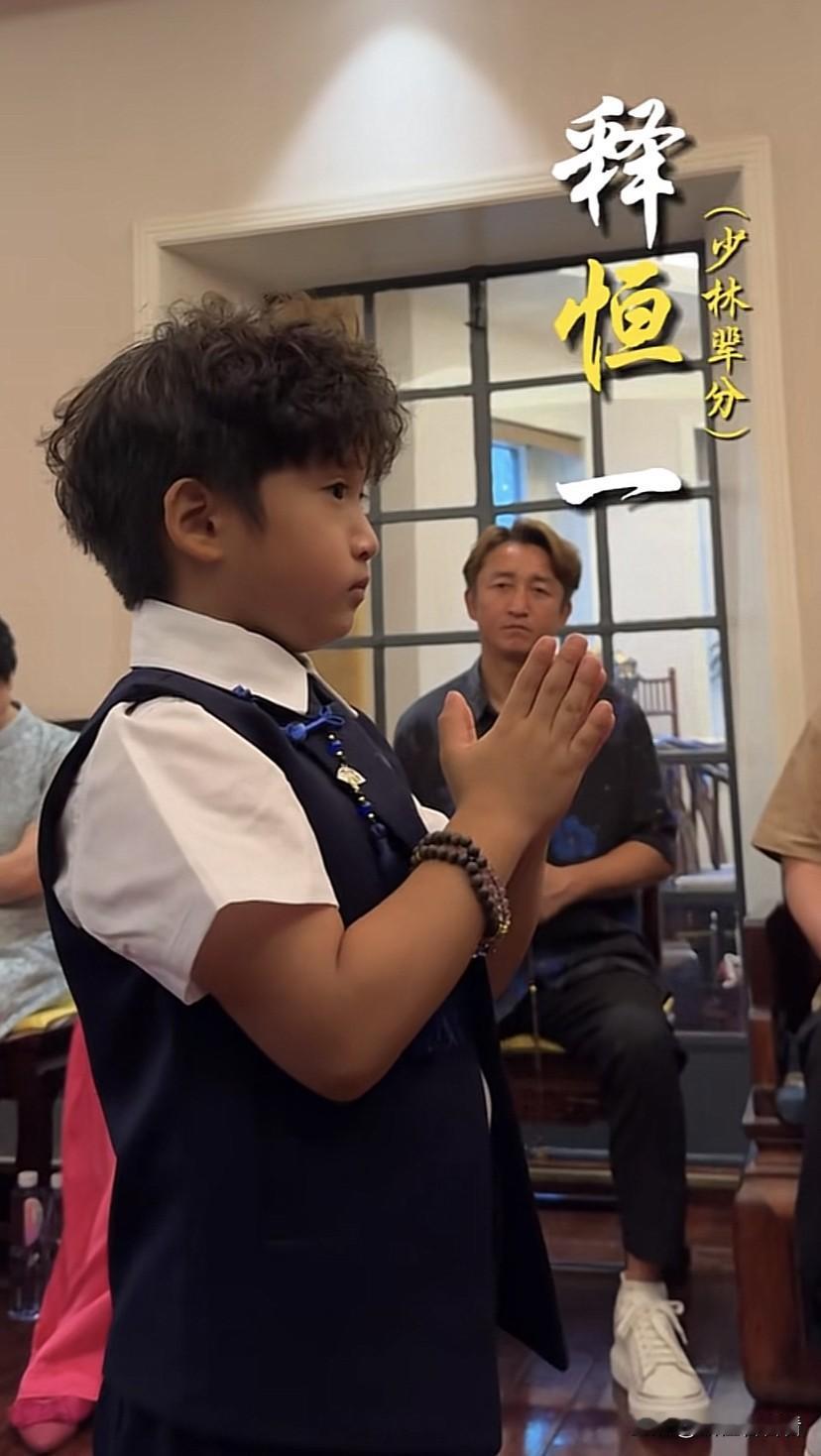 邹市明和冉莹颖的小儿子正式拜少林寺第三十四代弟子释延光为师傅,师傅给他赐名释恒一